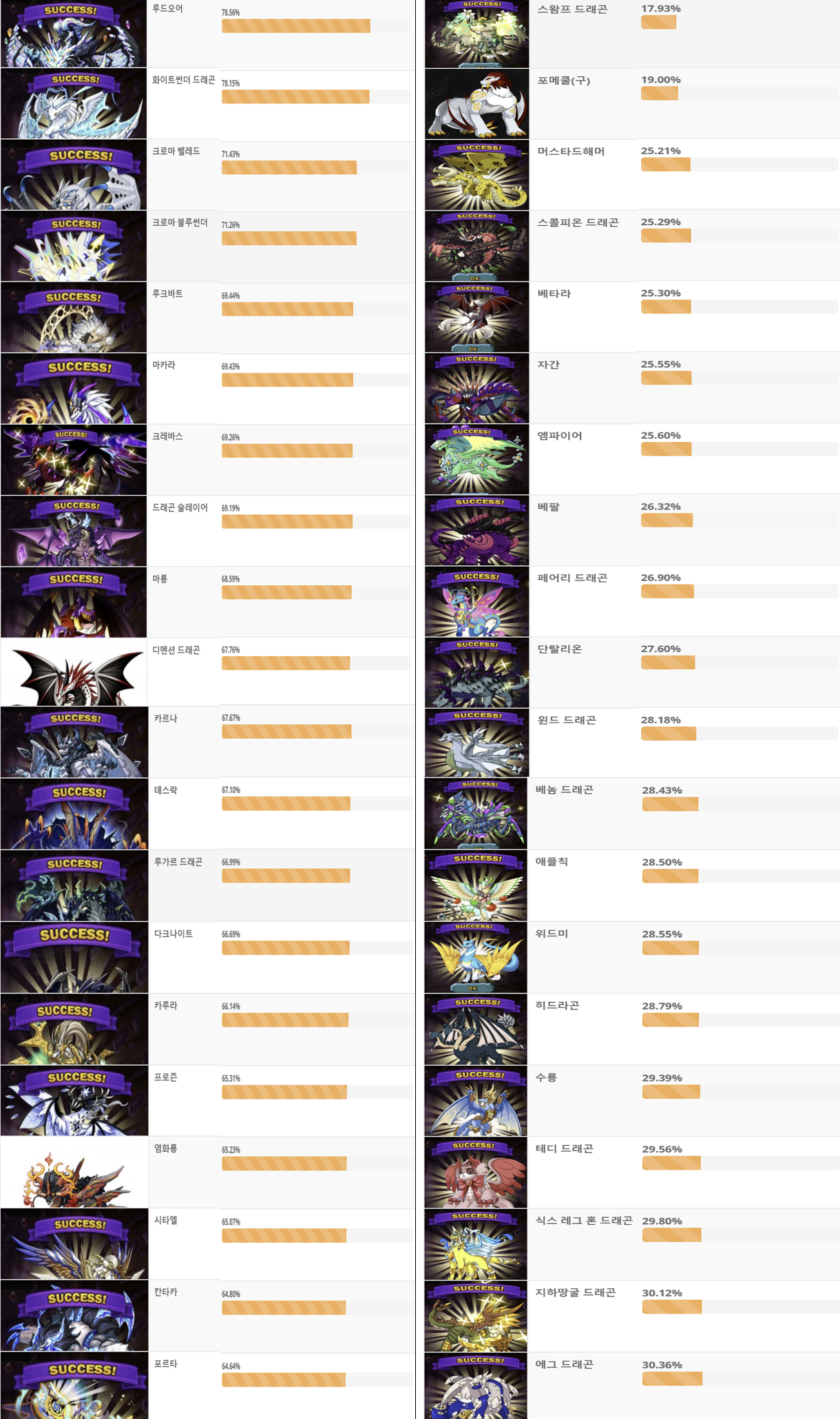 (신규 드래곤 일수록 누적 데이터가 낮습니다)