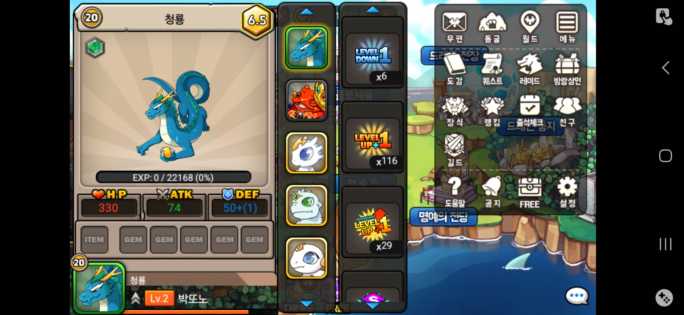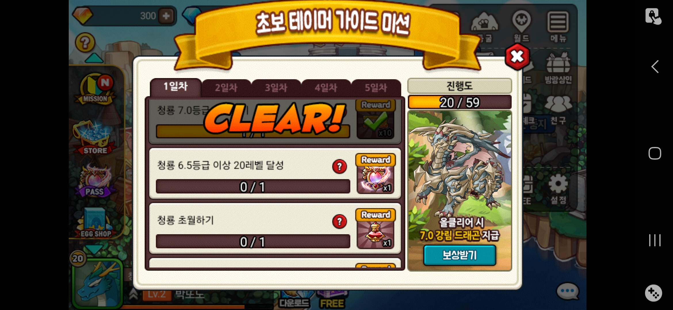 청룡 20렙 6.5 찍었는데 보상이 안 받아져요