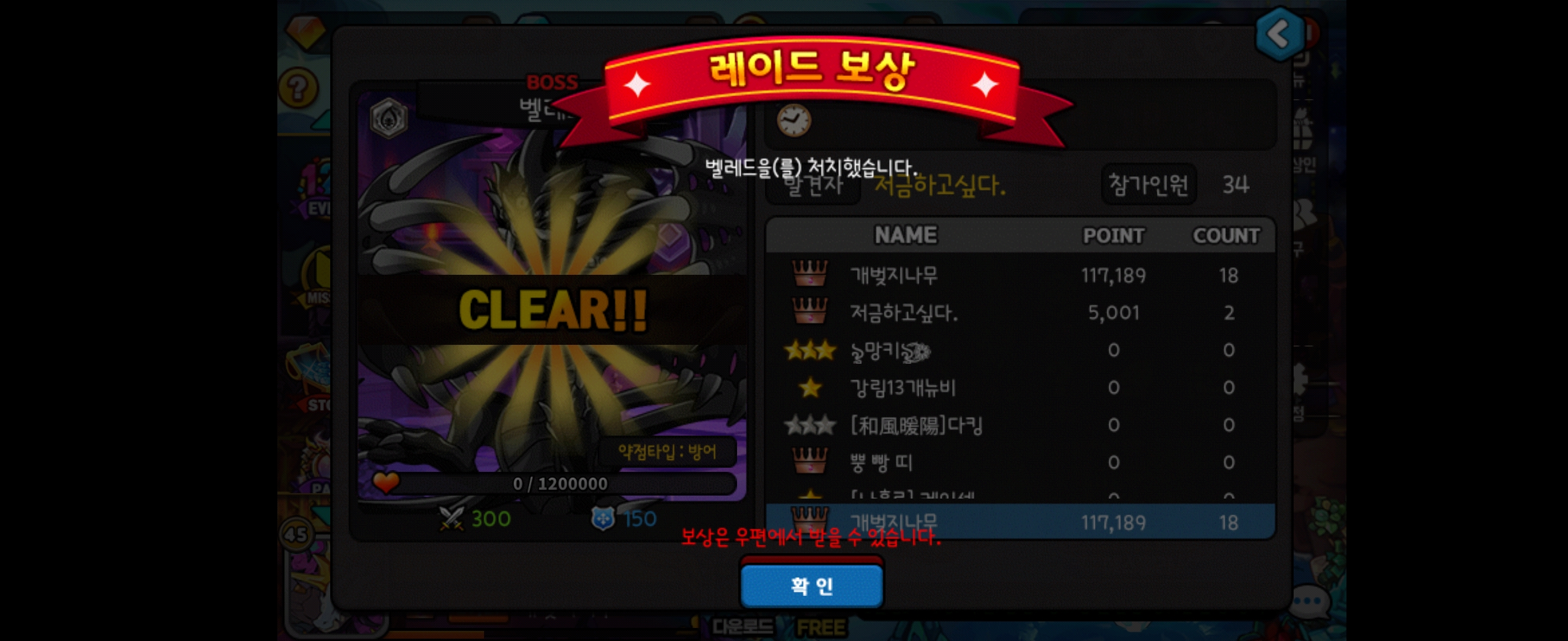 뭐야 내 벨레드 처치 보상