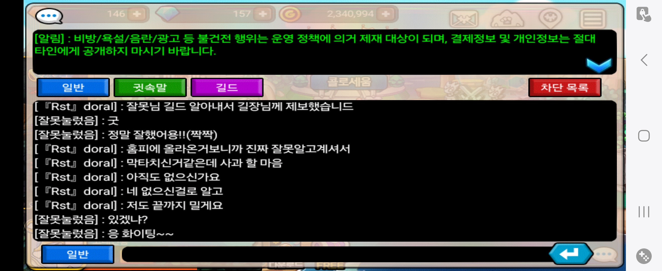 홈피 글 보고 억지 부리는게 아니라 뉴비라서 진짜 몰랐다는 걸 알고 사과를 요구했지만 거절했습니다 그래서 저는 잘못 님 해당 길드에 제보했고 이제서야 악어의 눈물로 사과하는 척하네요