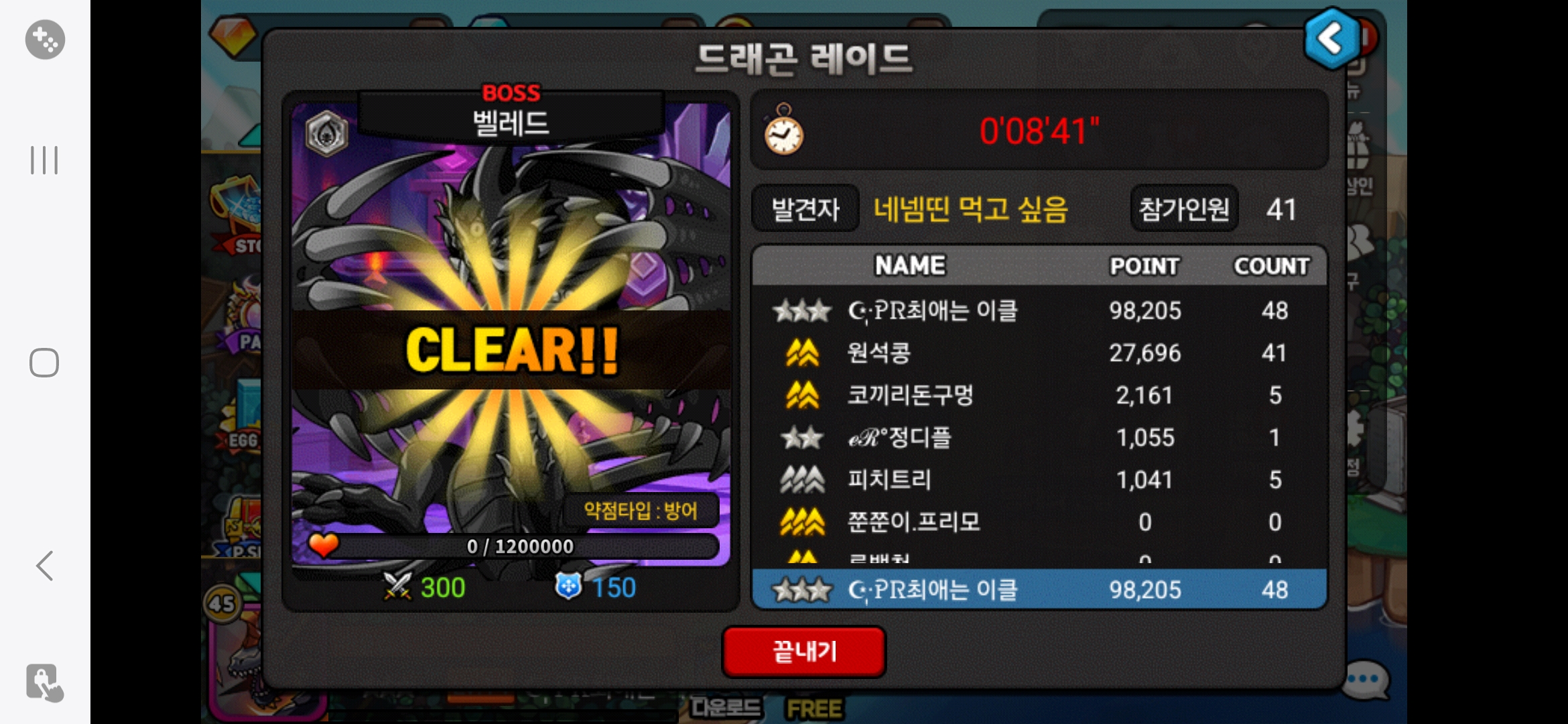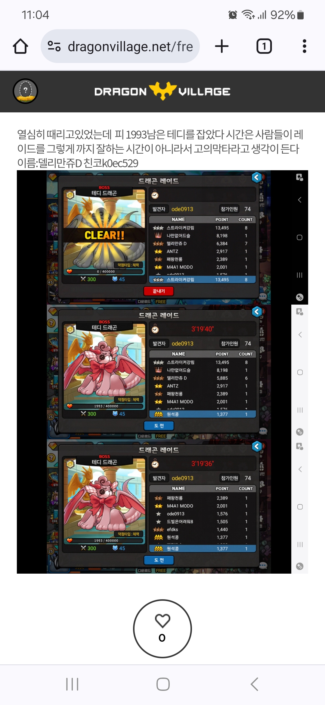 일전에 벨레드 막타범인 원석콩님을 자게에 박제함 이때 당시 레이드 끝나자마자 일챗에서 불렀음에도 답변이 없고 당시 인원이 적어 벨레드레이드가 길어져 나를 제외한 분들은 쫌만치고 레이드를 그만둠 근데 한참있다 원석콩님이 등장해 엄청나게 치기 시작하시더니 결국 난 막타를 치지못함 그래서 자게 일챗 모두 글을 올렸으나 어떠한 대응도x 그런데 얼마지나지않아 일챗에서 레친을 구하는데 이분이 친추를 걸으심 그분꺼 받자마자 일챗에서 찾는데 그때도 대응x 그래서 걍 친추 안받고 있었는데 오늘 이분이 레이드 막타범을 박제하시네? 그런데 신기한건 인증샷 두장이 다른 사람이 찍은거임 하나는 금쐐기계인 원석콩, 다른 하나는 은별계인 스트라이커강림