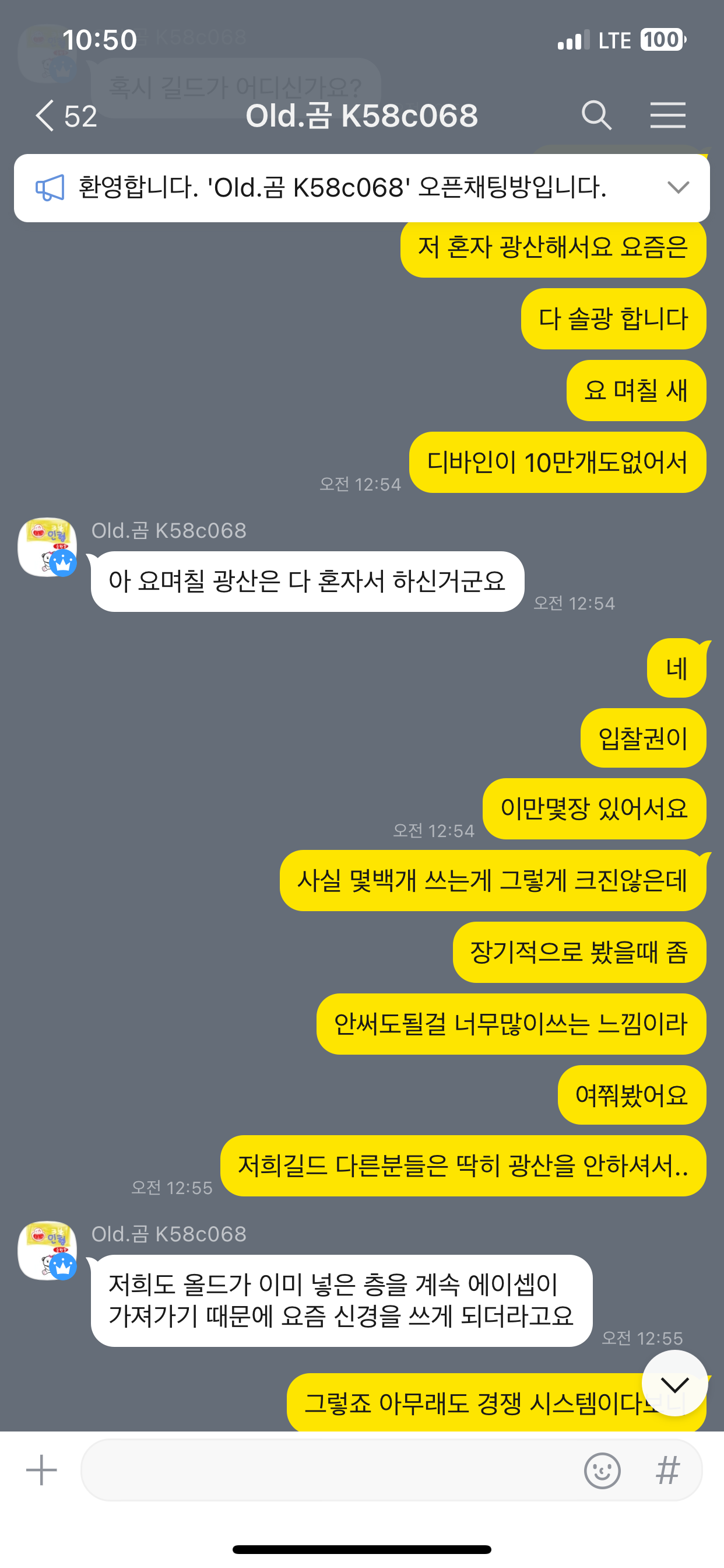 이 과정에서 소위말하는 보상이 2배인 10배수층은 오랫동안 올드에서 노력해서 가져가고 있었고, 그 보상을 얻기위해서는 그에 상응하는 노력과 투자, 경쟁이 동반되어야한다는것을 누구보다도 본인이 더 잘 알고있습니다. 이에 윗대화와 같이 말을 하였고 당사자들끼리 10배수층은 경쟁하되, 다른층은 함께 하자 라는 좋은 해결안을 나누고 갔음에도 불구하고 그저 광산 티켓 들어가는 모습만 보고