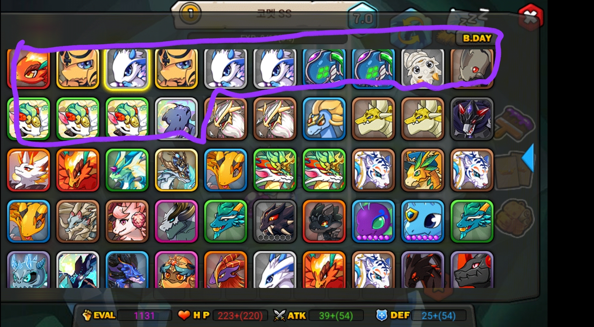 그래도 저것만 다 키우면 빛 제외 속성당 9마리 완성이라 힘내봅니다.