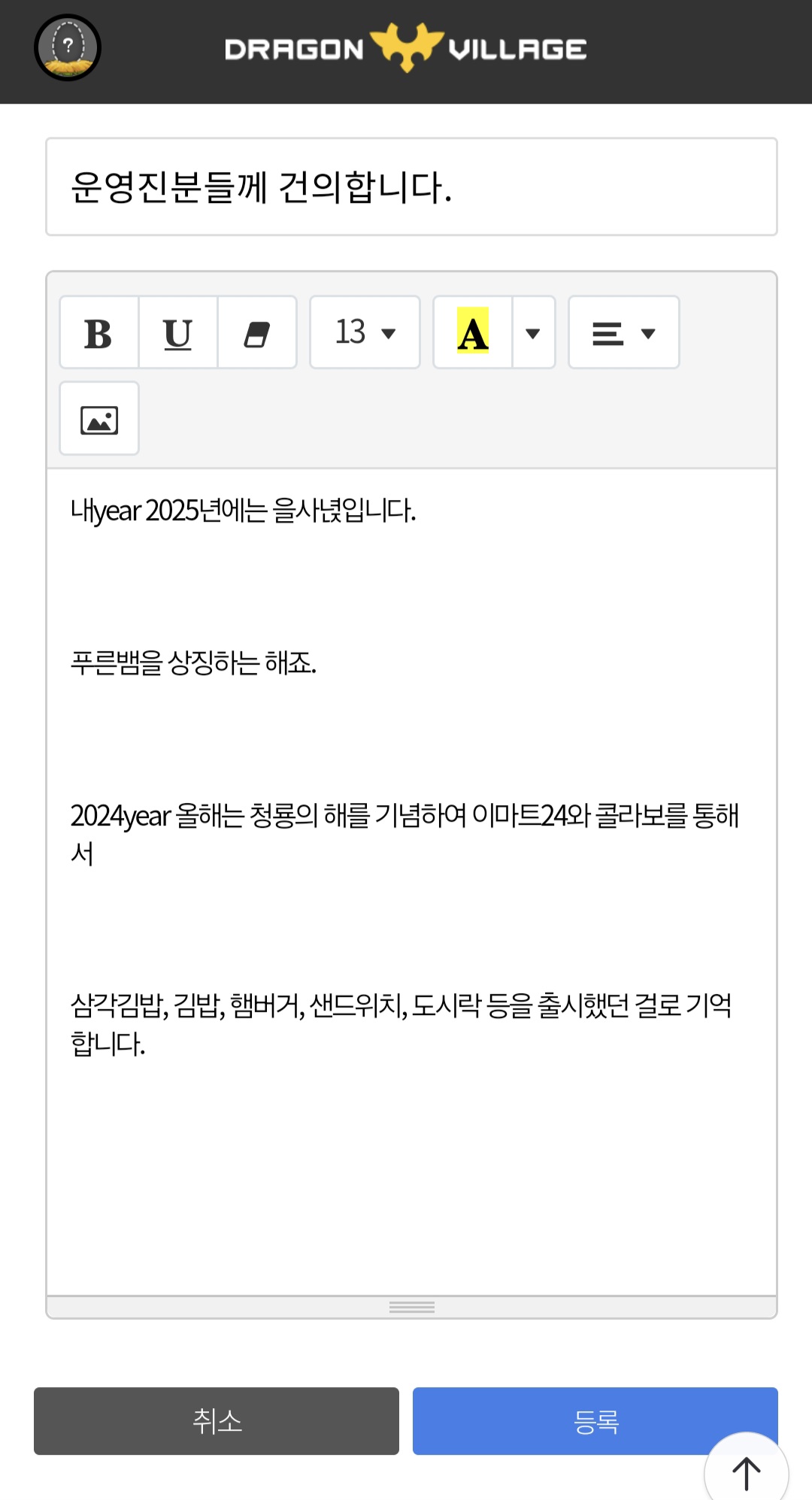 드래곤빌리지에 오신것을 환영합니다!