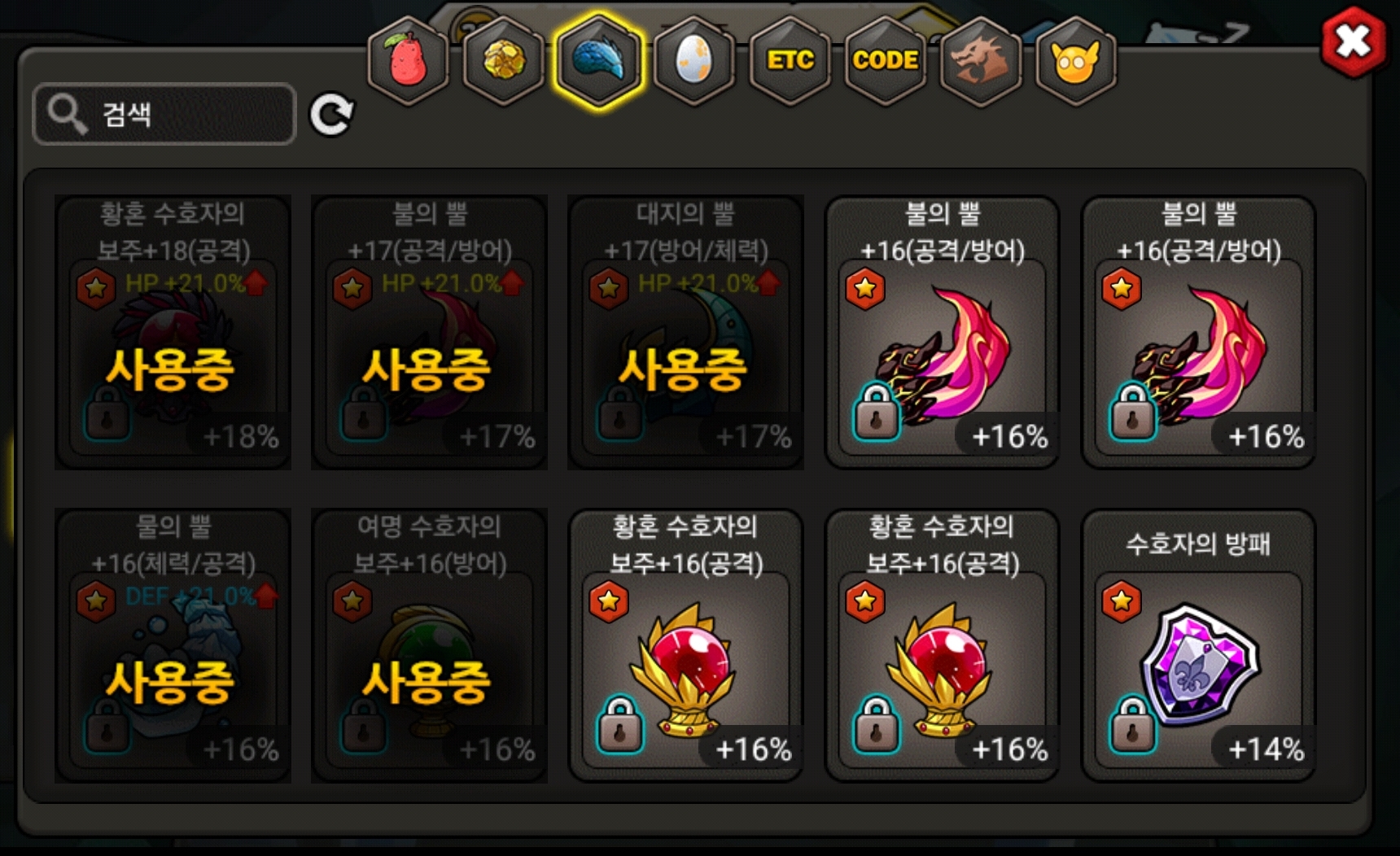 안쓰고 있는 장신구로 체공 젬 배치 부탁드립니다