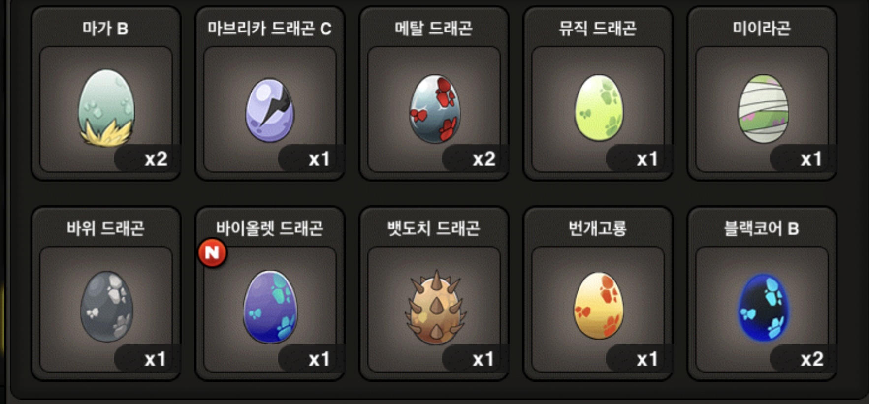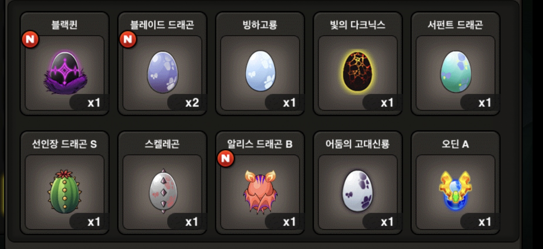 +로 다크닏스 7.0 45렙, 고대신룡 캡슐 6.5 34렙있습니다