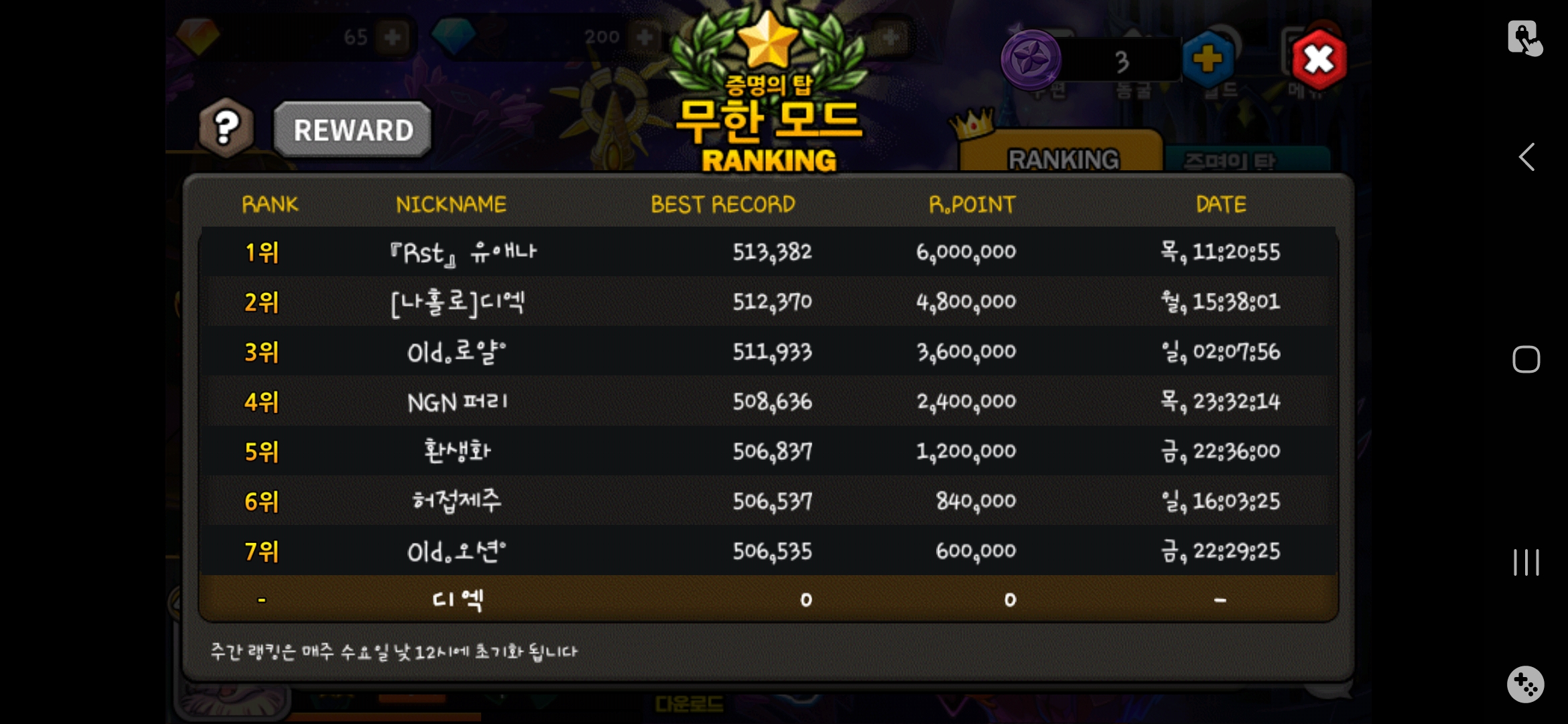 무한증탑 18장신구 38젬으로 50층뚫었네요