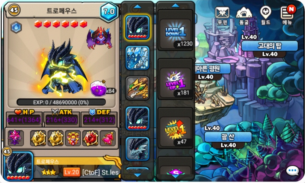 왼쪽은 트페진각, 오른쪽은 아이스 드레이크입니다. 공격력을 보시면 확인이 가능하실겁니다.