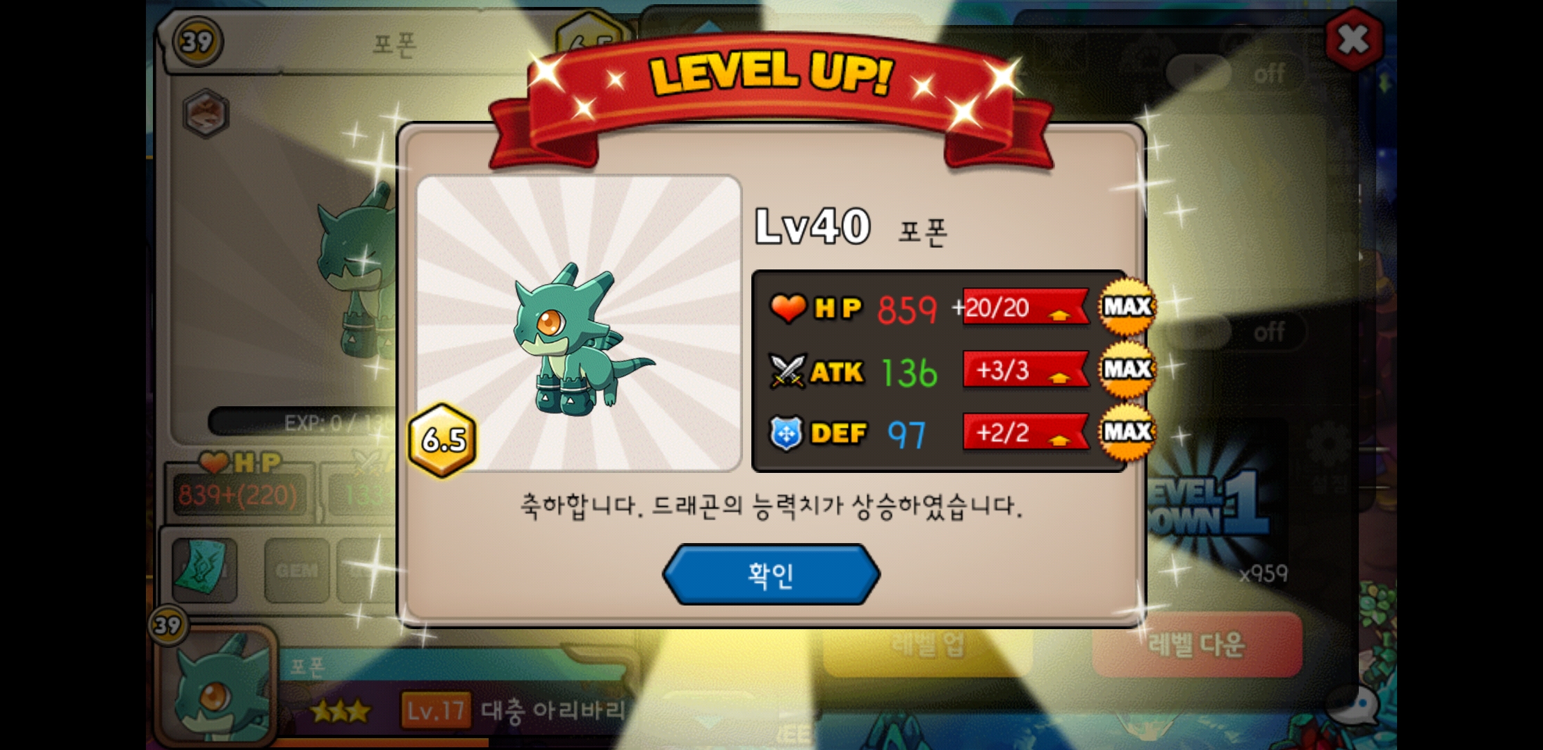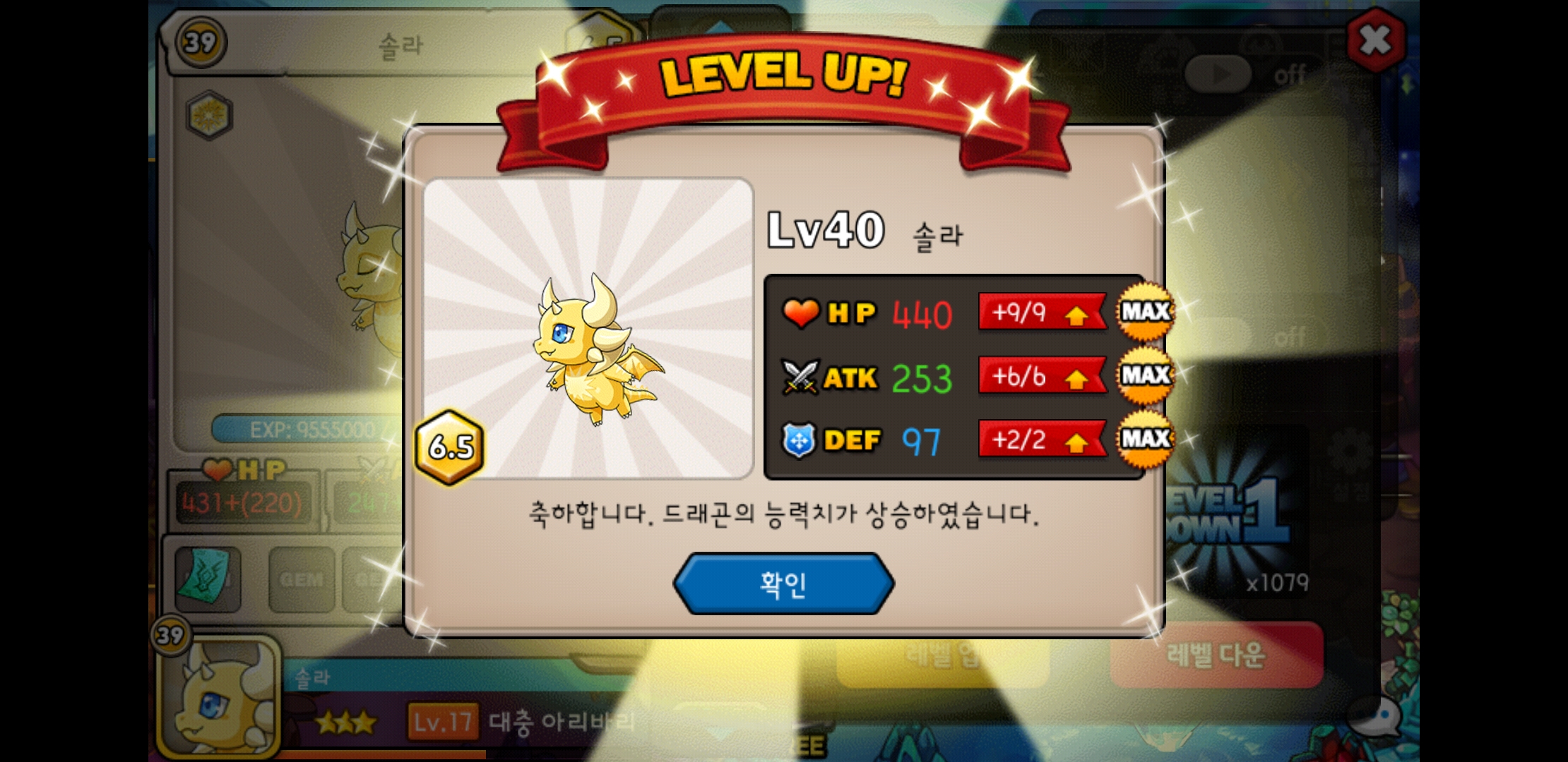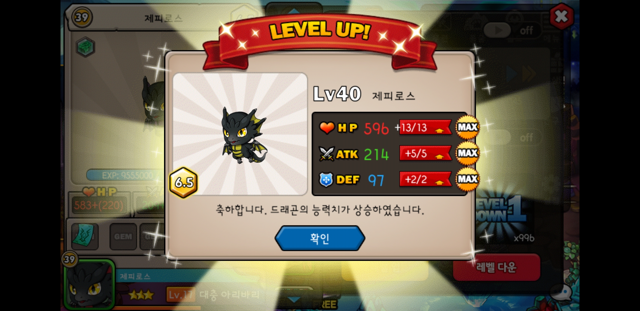 이제 저걸 언제또 45렙으로 만들고 언제 재료용키우고 정수모을지 막막하지만... 오랜만에 용 새로 키우니 드빌이 다시 재미있네요