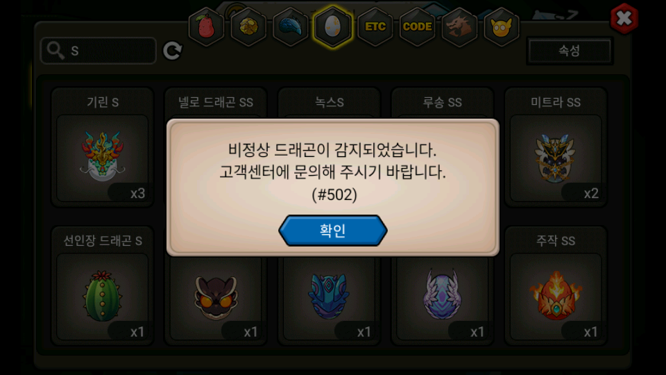 부계정 알 코변하다가 잠시 연결이 끊어졌는데 비정상 드래곤을 감지하더니