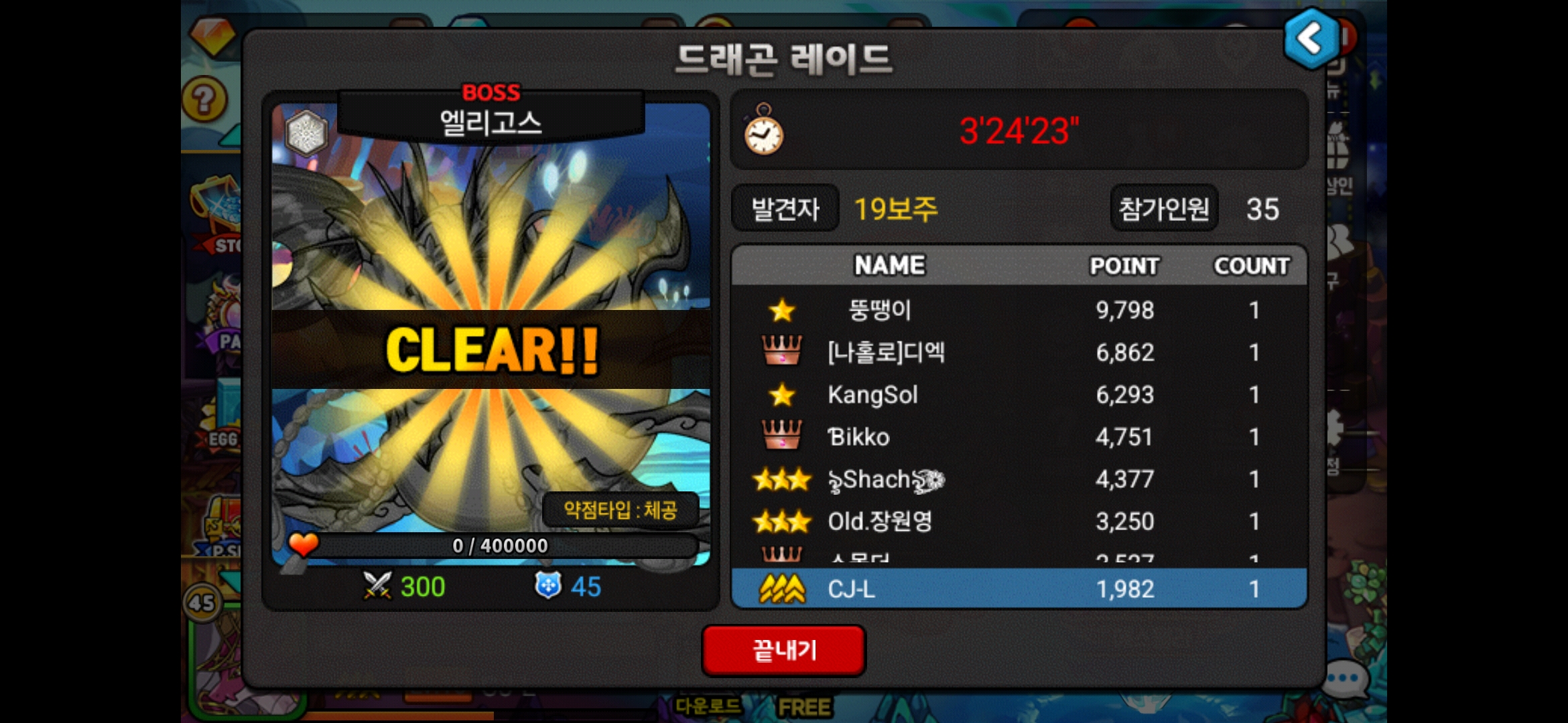 제가 엘리고스 막타친것 같아요