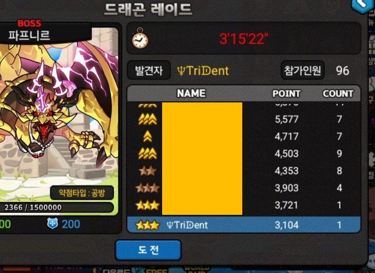 위 사진처럼 시작한지 얼마 안된 뉴비분들도 딜량만 맞추어주시면 언제든지 참여 가능하니
