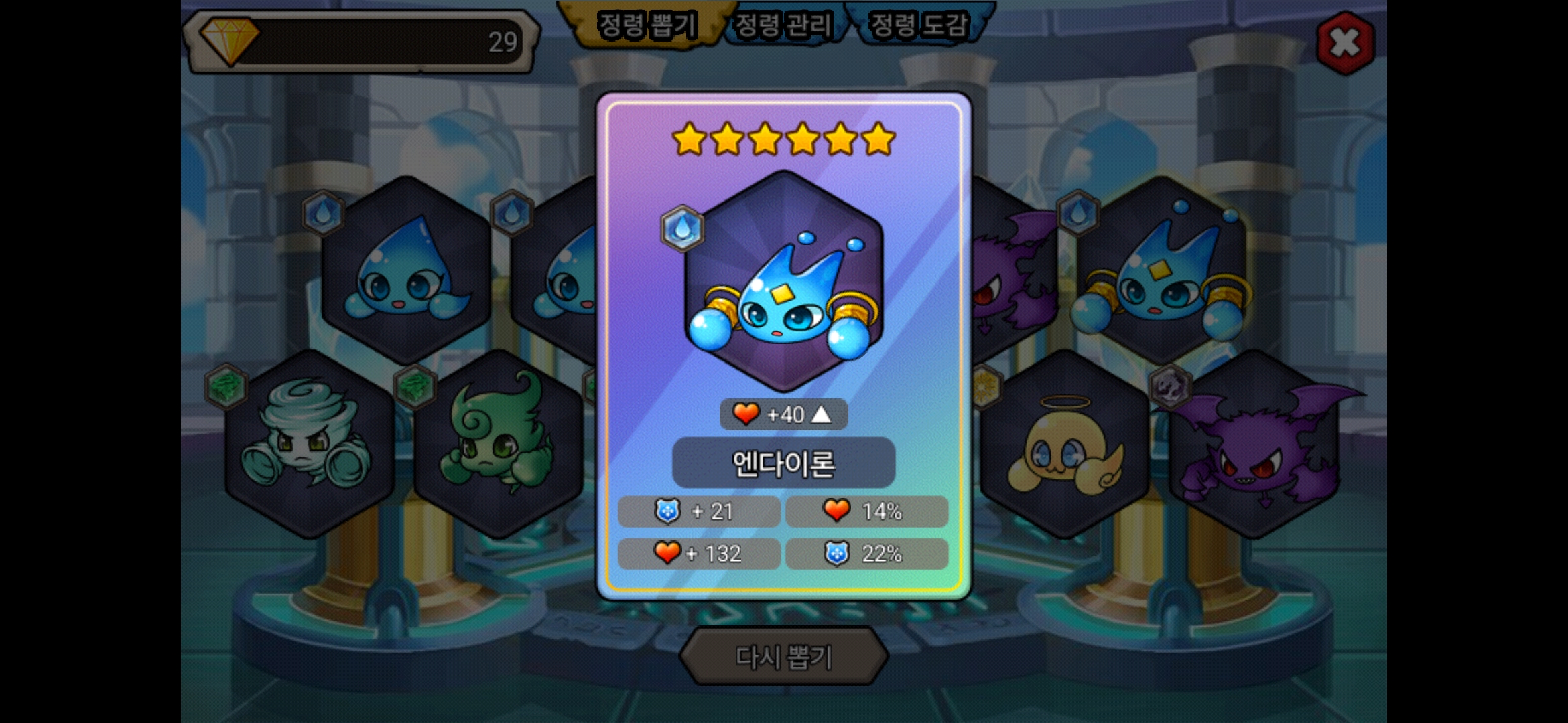 드디어 퍼센트 두개가 있는 6성 정령에 감탄이 안나올 수가 없었습니다만