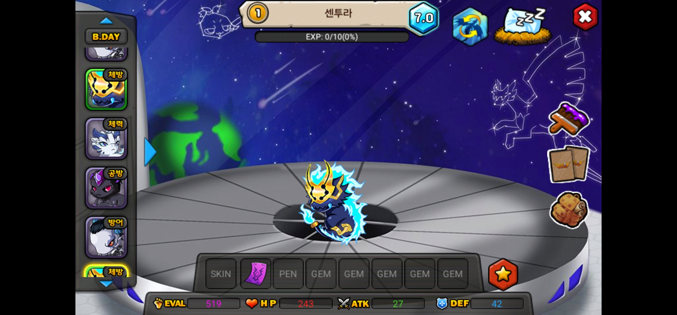 센투라2카르나2마르바스1말로단1다로스1 7개 나왔어용