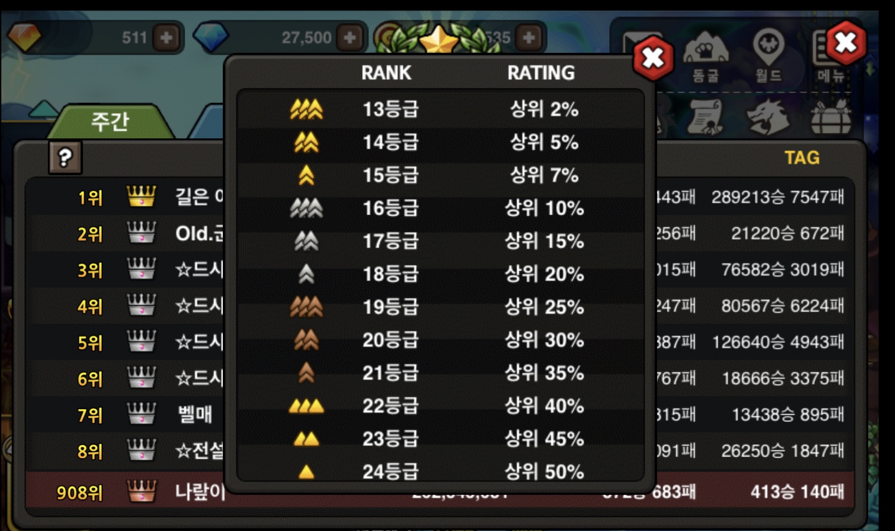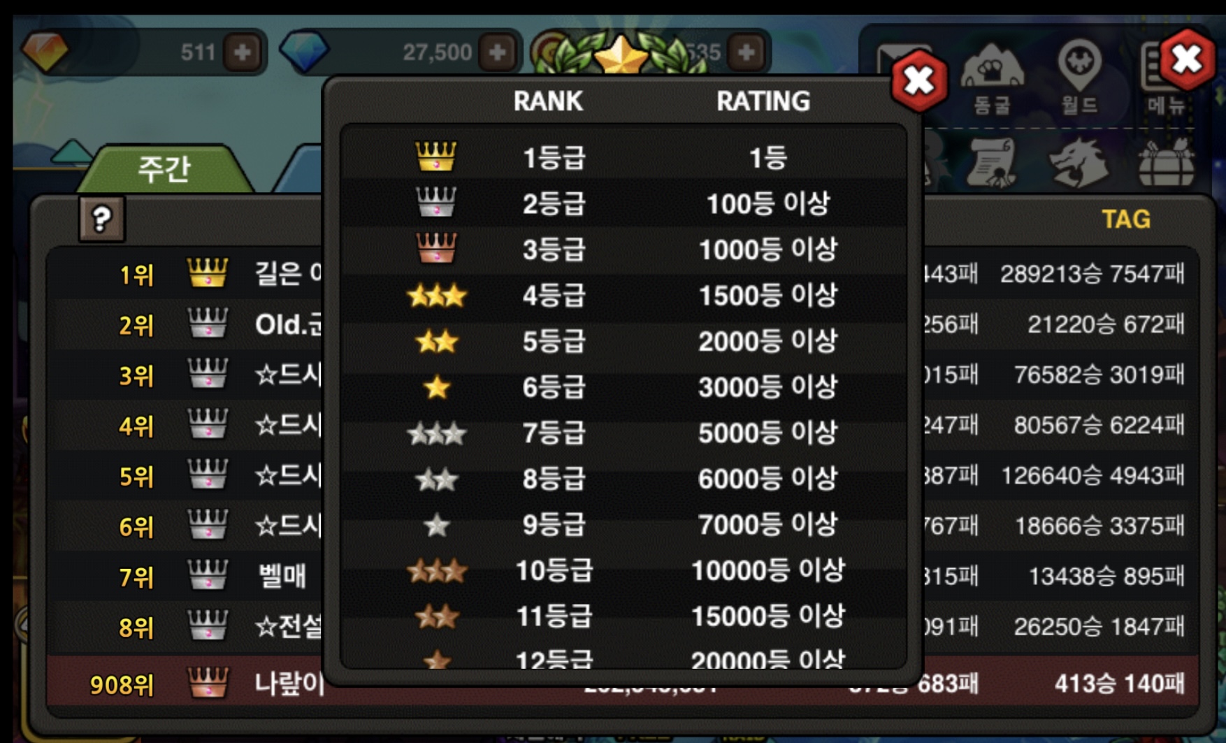 등수별 계급