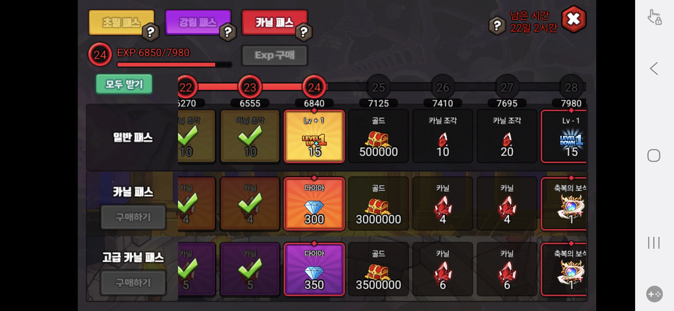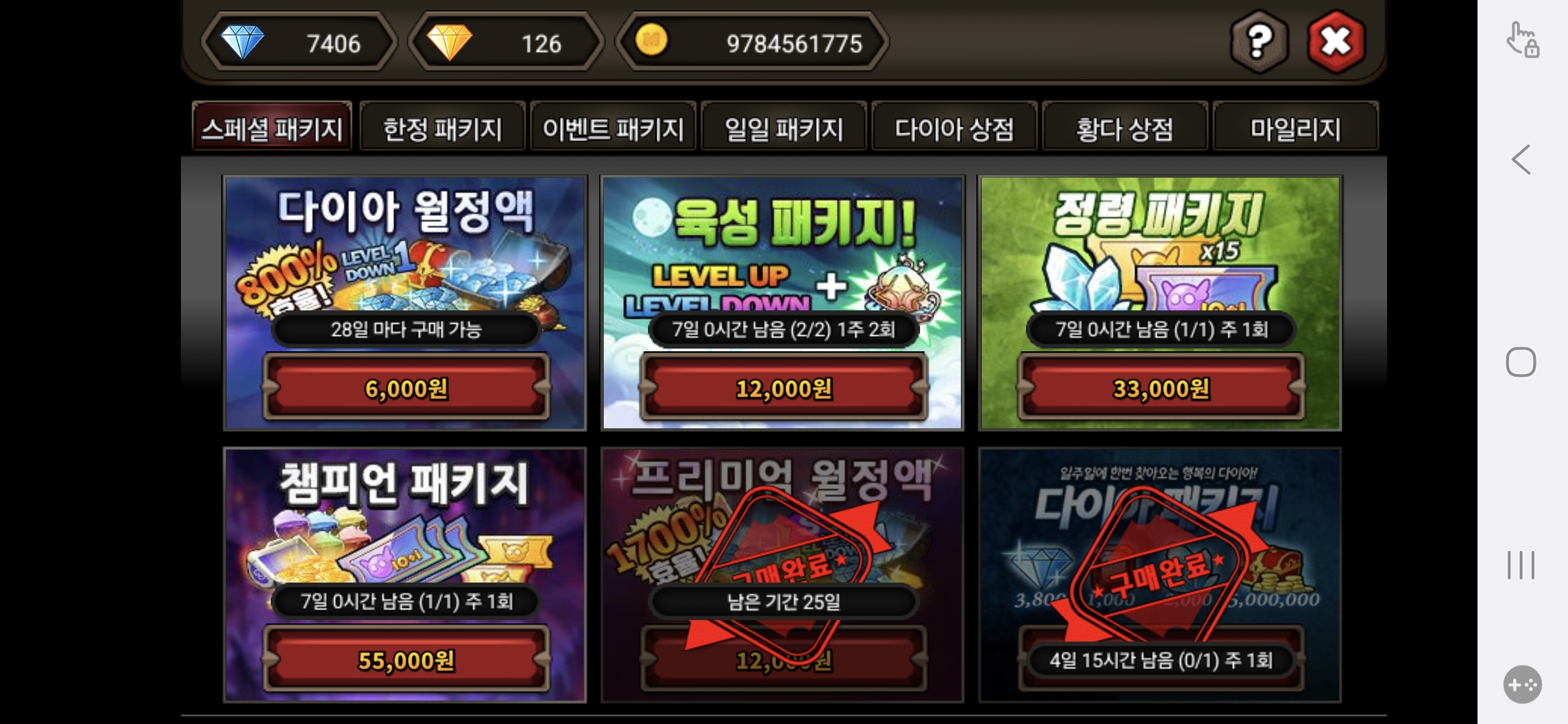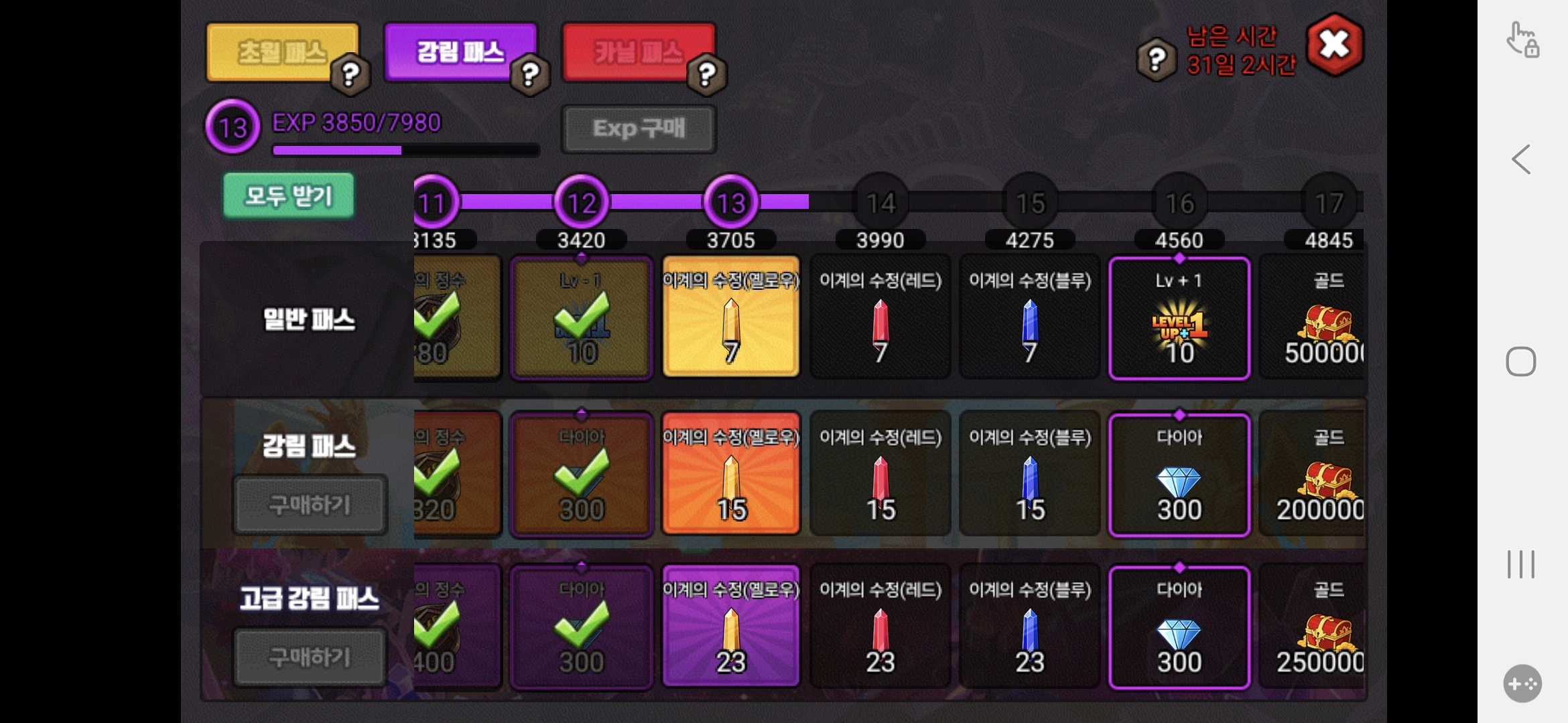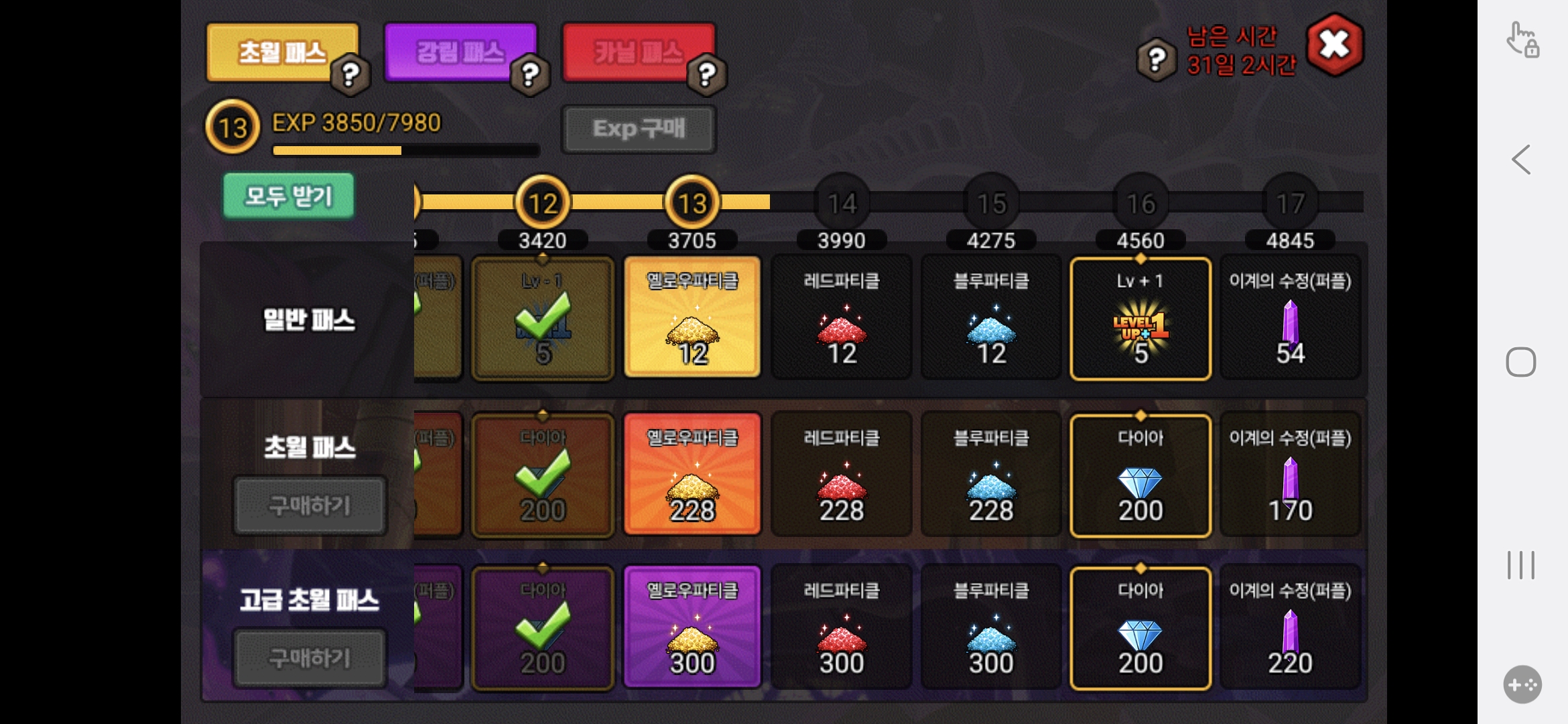 매주 다패 매일 추가입장권 구매 매번 초패/강패/카패 구매