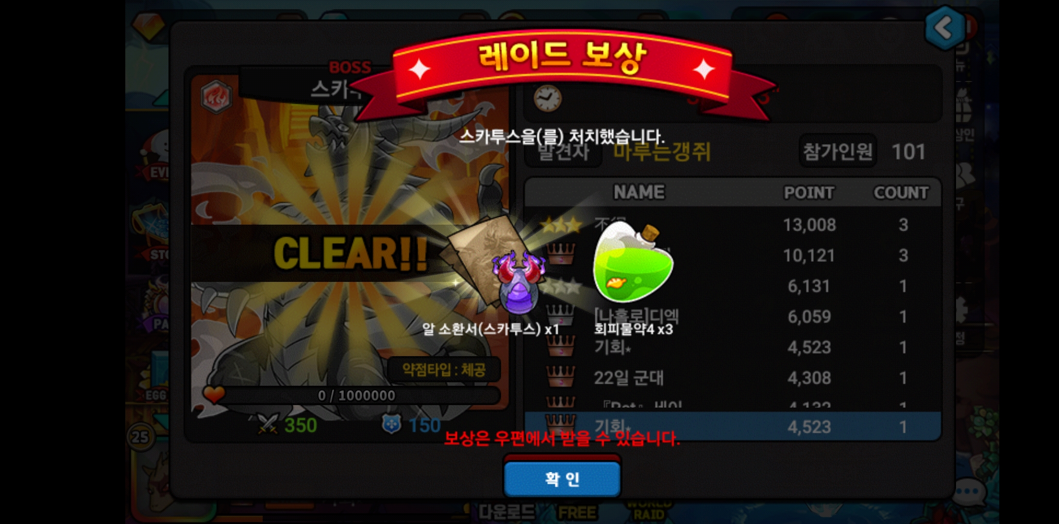 레이드 보상 물약 관련