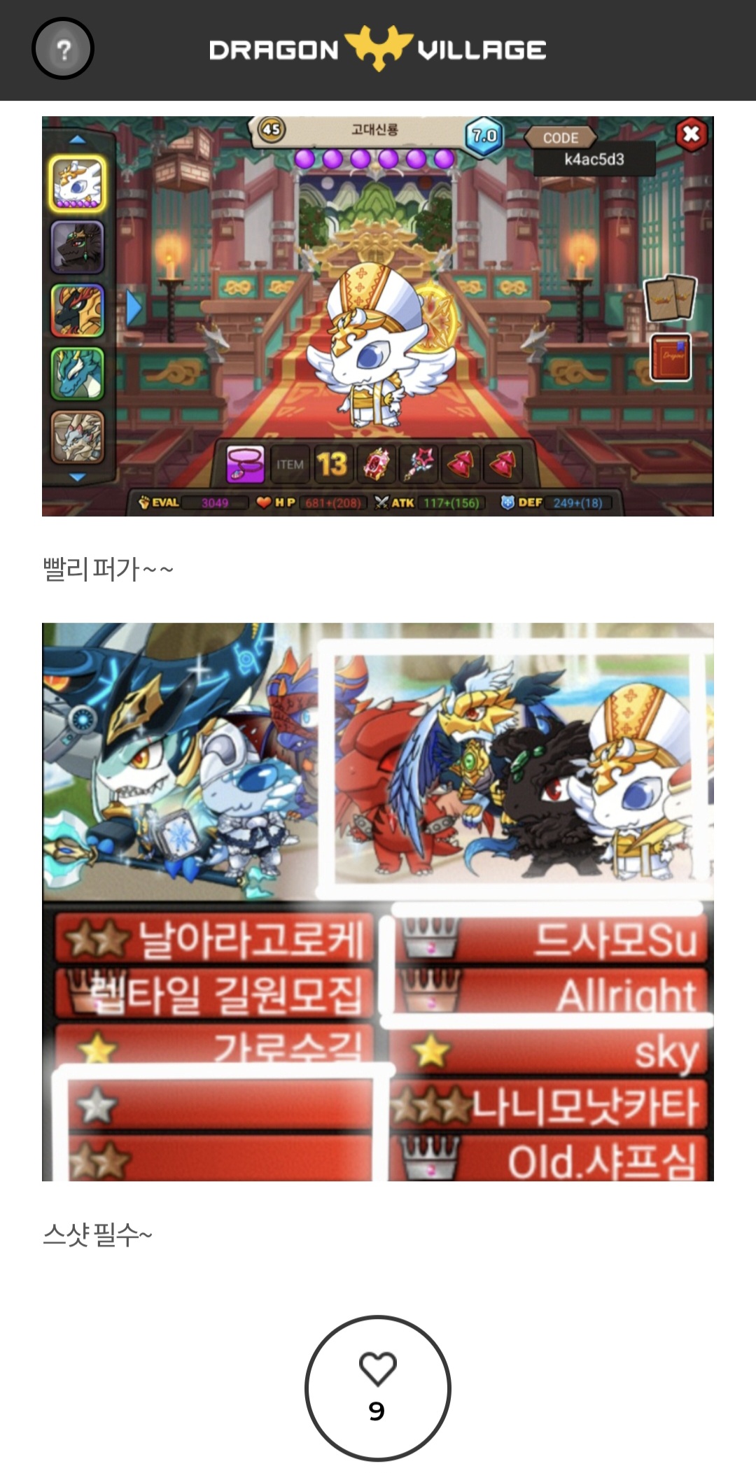 드래곤빌리지에 오신것을