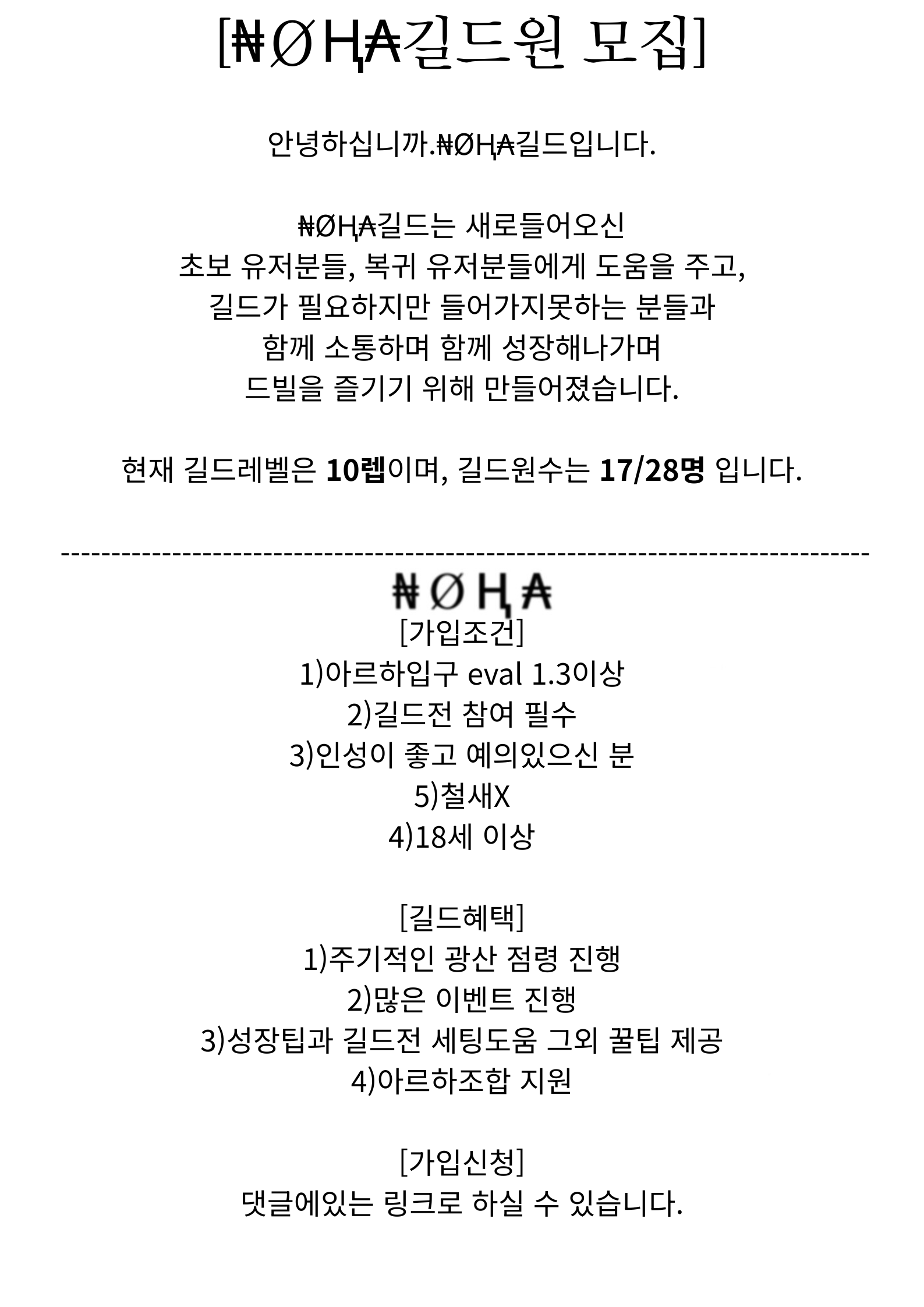₦ØⱧ₳길드원 모집합니다