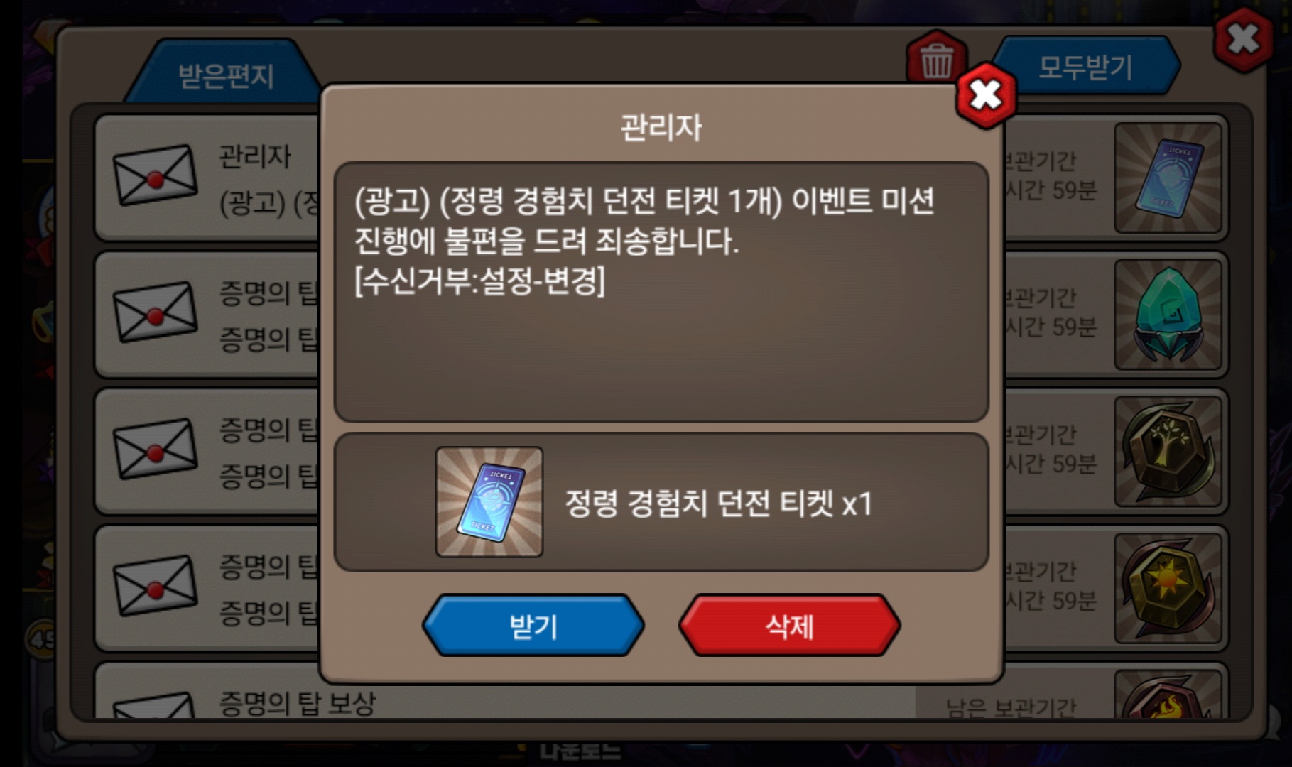 정령던전 티켓 다시 주네요