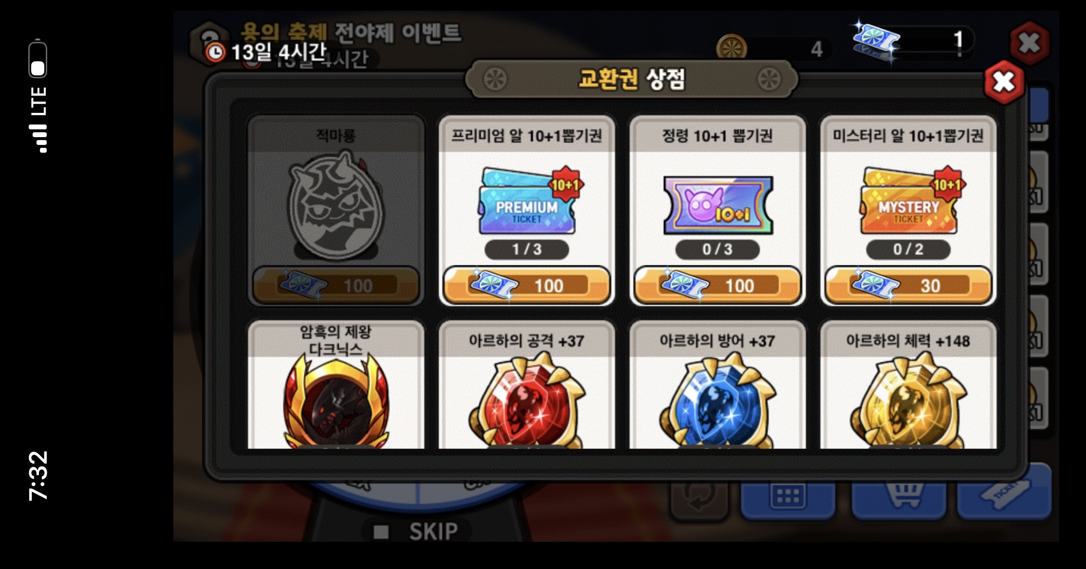 전야제 티켓 상점 구매 버그