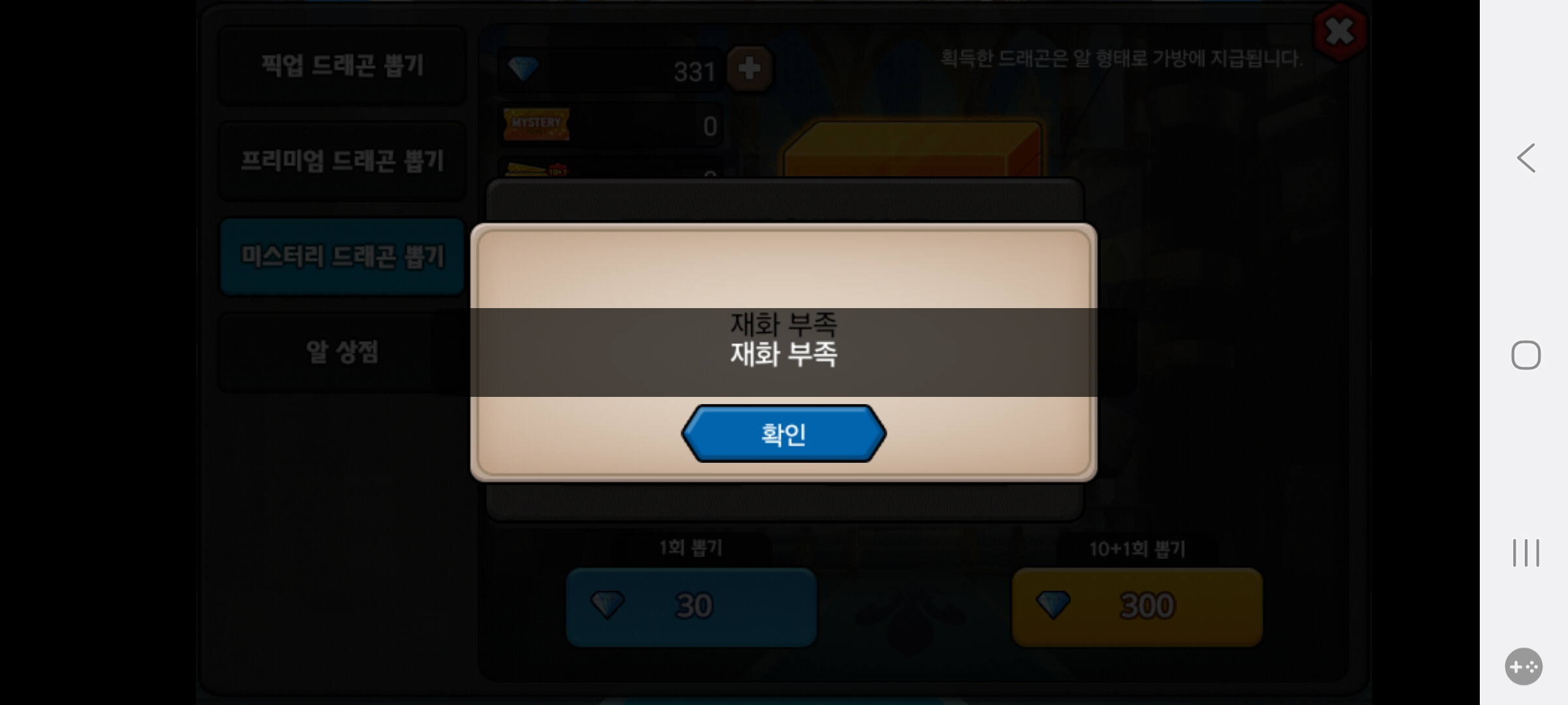 다야 300개 있는데 왜 재화부족이 뜨죠..?