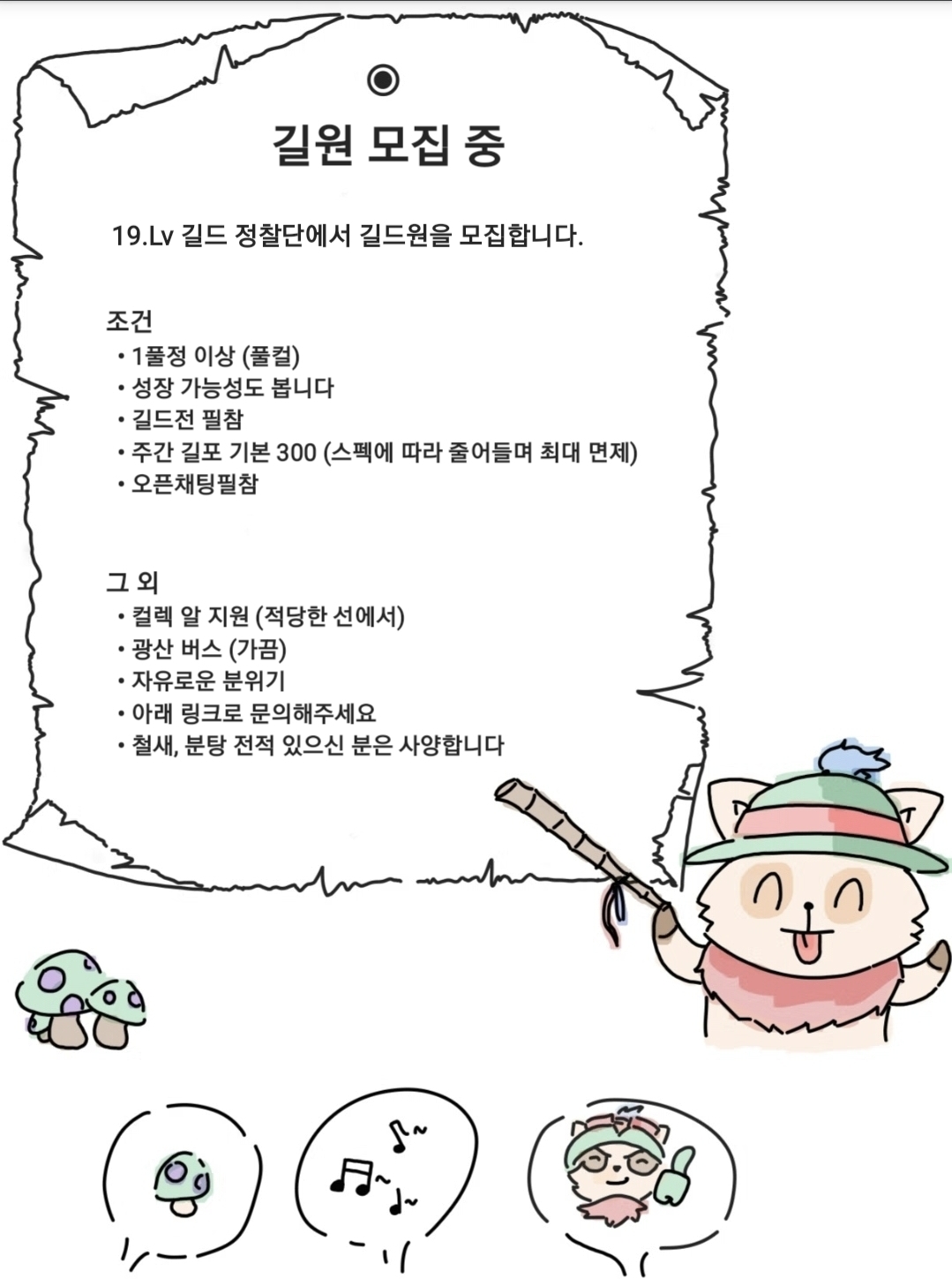 19레벌 정찰단에서 길드원을 모집합니다