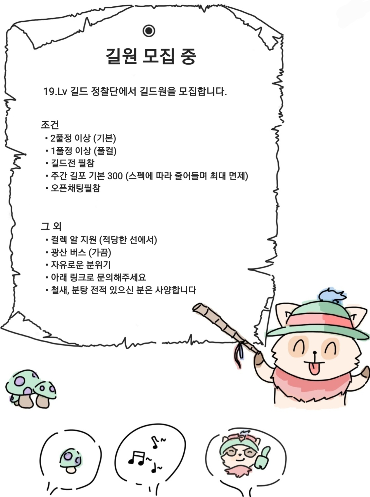 19레벌 정찰단에서 길드원을 모집합니다!