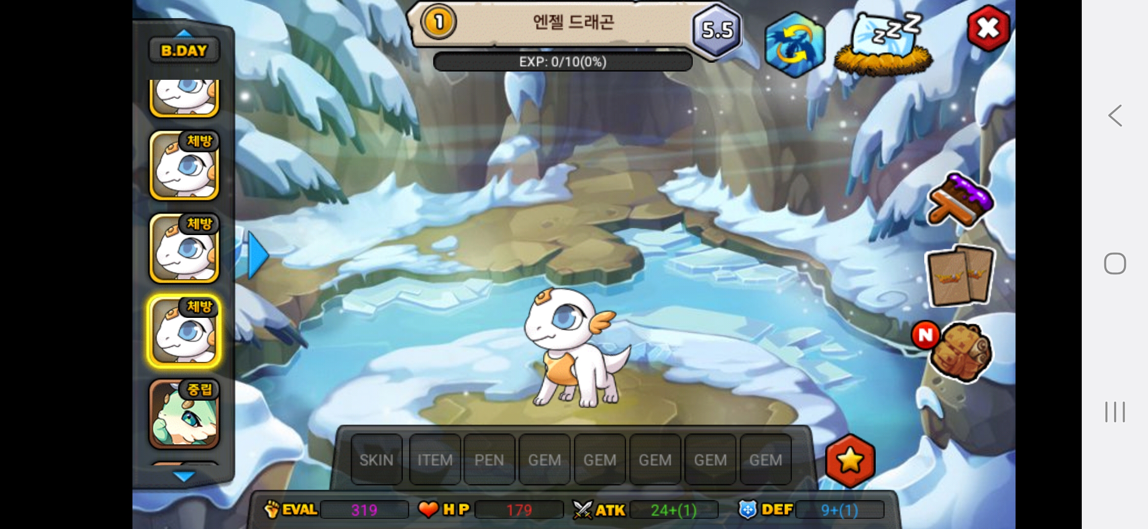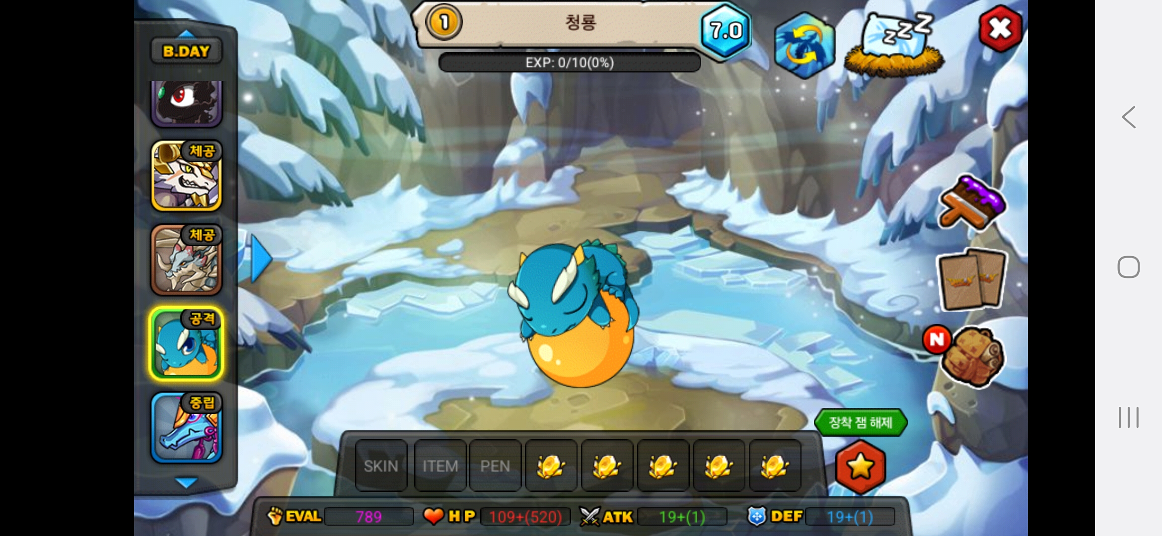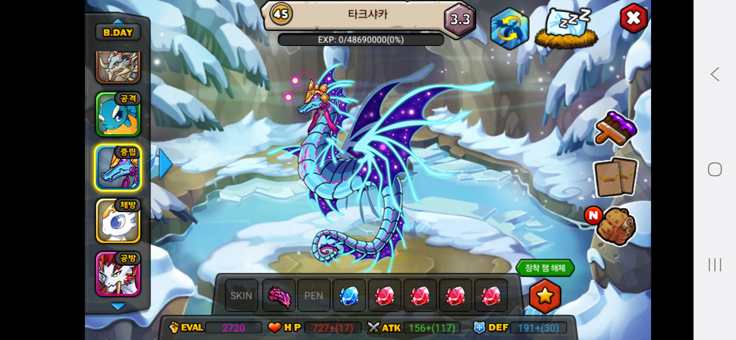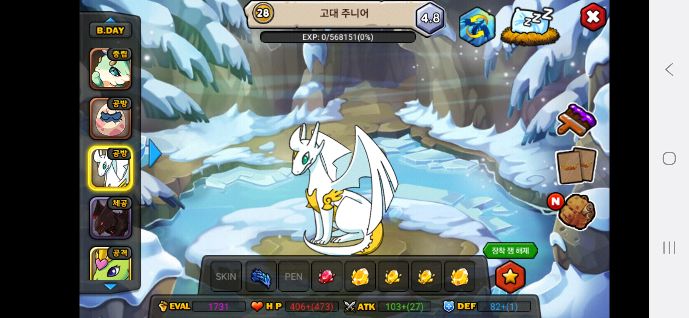 올해아직생일이 2월생이라 생일안지나서 25이죠 아직 하하저는 용들 다평등하게 예뻐합니다.다만 고대신룡을 전 계정에서 진각성시킨것을 전화번호바꿔서 계정날려서 그런것을 후회합니다.그래서 고대신룡에게 애정과 관심을 더주고싶은건사실입니다.흑룡을 키웠을때는 지금처럼 노력과 피와땀이 안보여서 키우는데 재미가없고 자본으로 승부하는맛밖에 안보이다보니 키우는게 재미가없더라고요 그래서 흑룡한테는 관심이 덜가고 걱정이덜되는게사실입니다. 고대신룡은 제첫 각성드래곤이기도 하고 그래서 예쁩니다.하지만,그래도 저는 흑룡,고대신룡,포메쿨,청룡,엔젤드래곤,엔젤드래곤,엔젤드래곤,엔젤드래곤,청룡,메라크,즈믄,콜로서스,다크닉스,