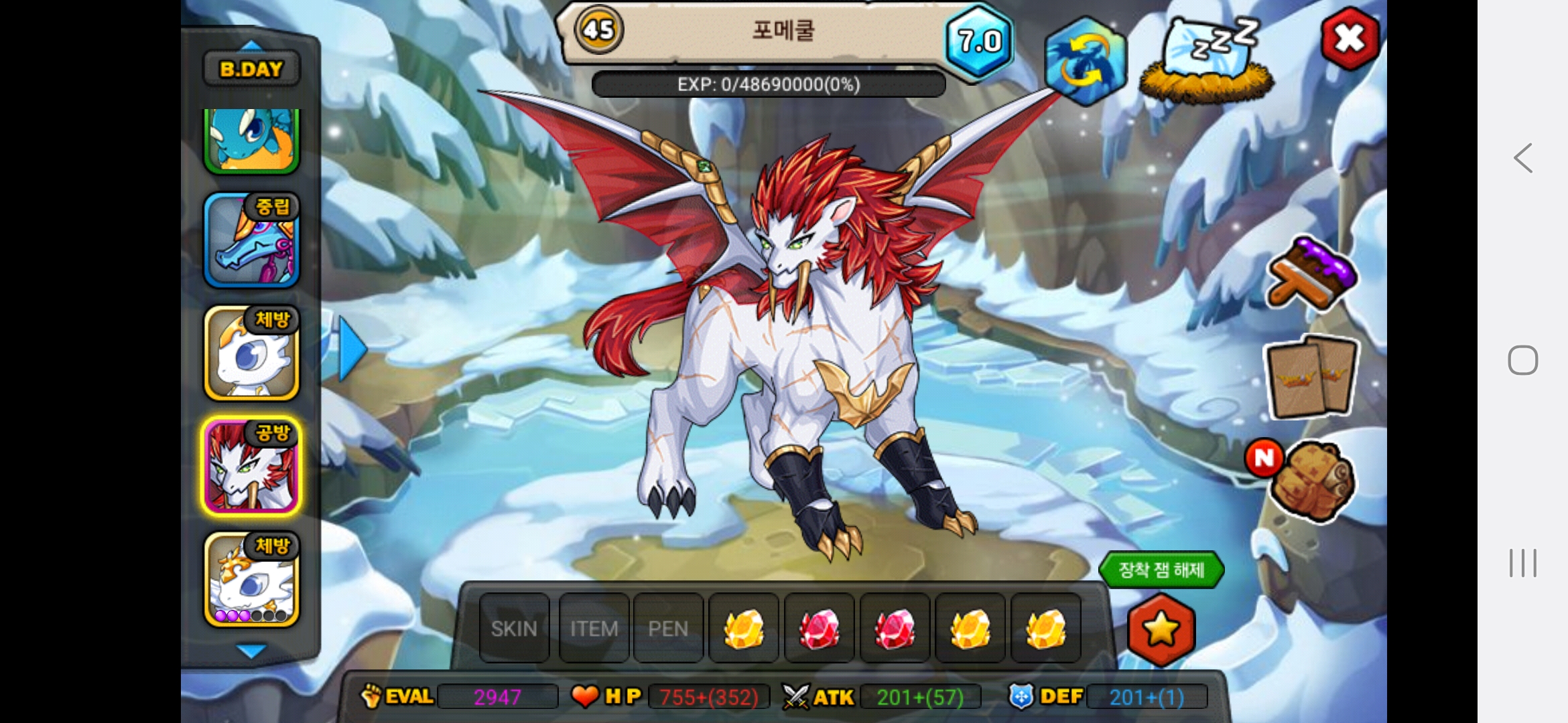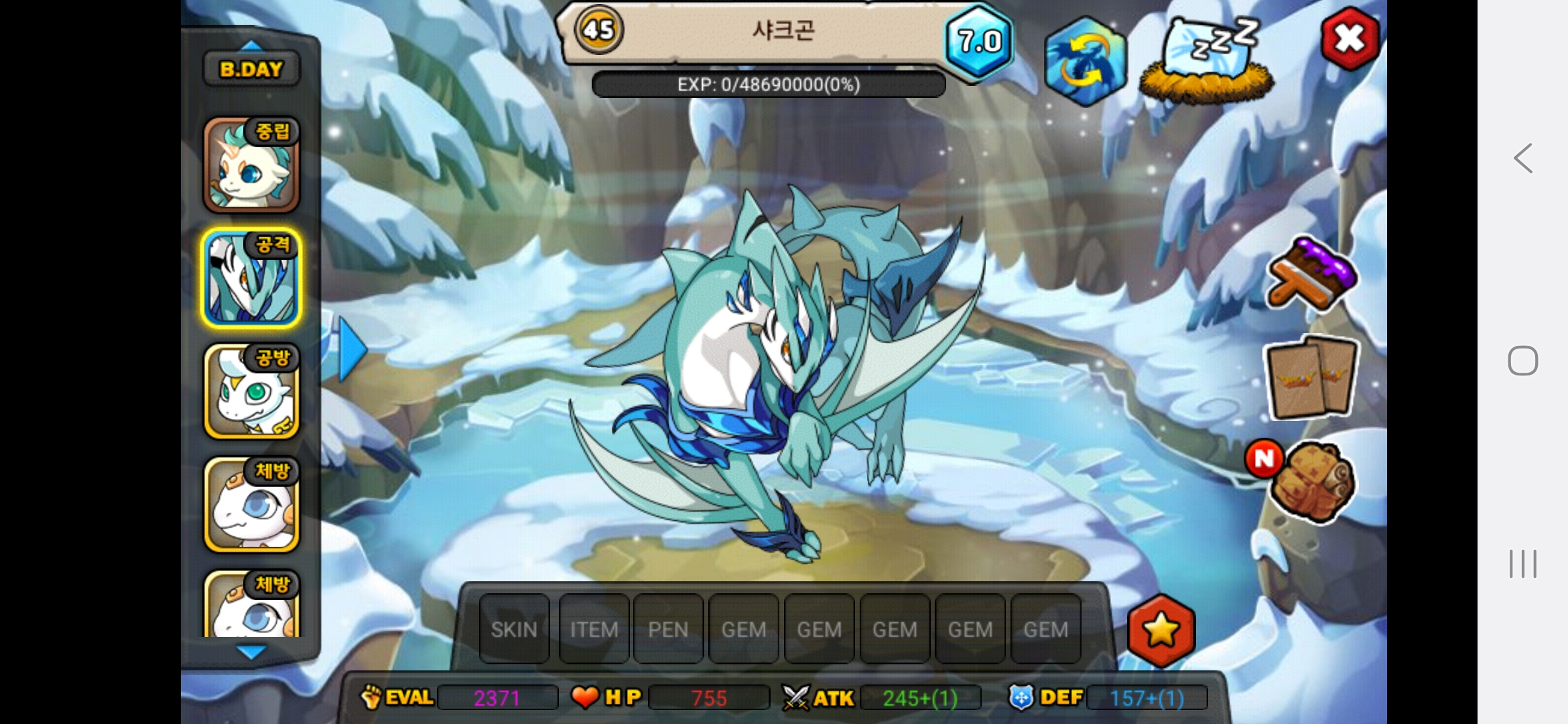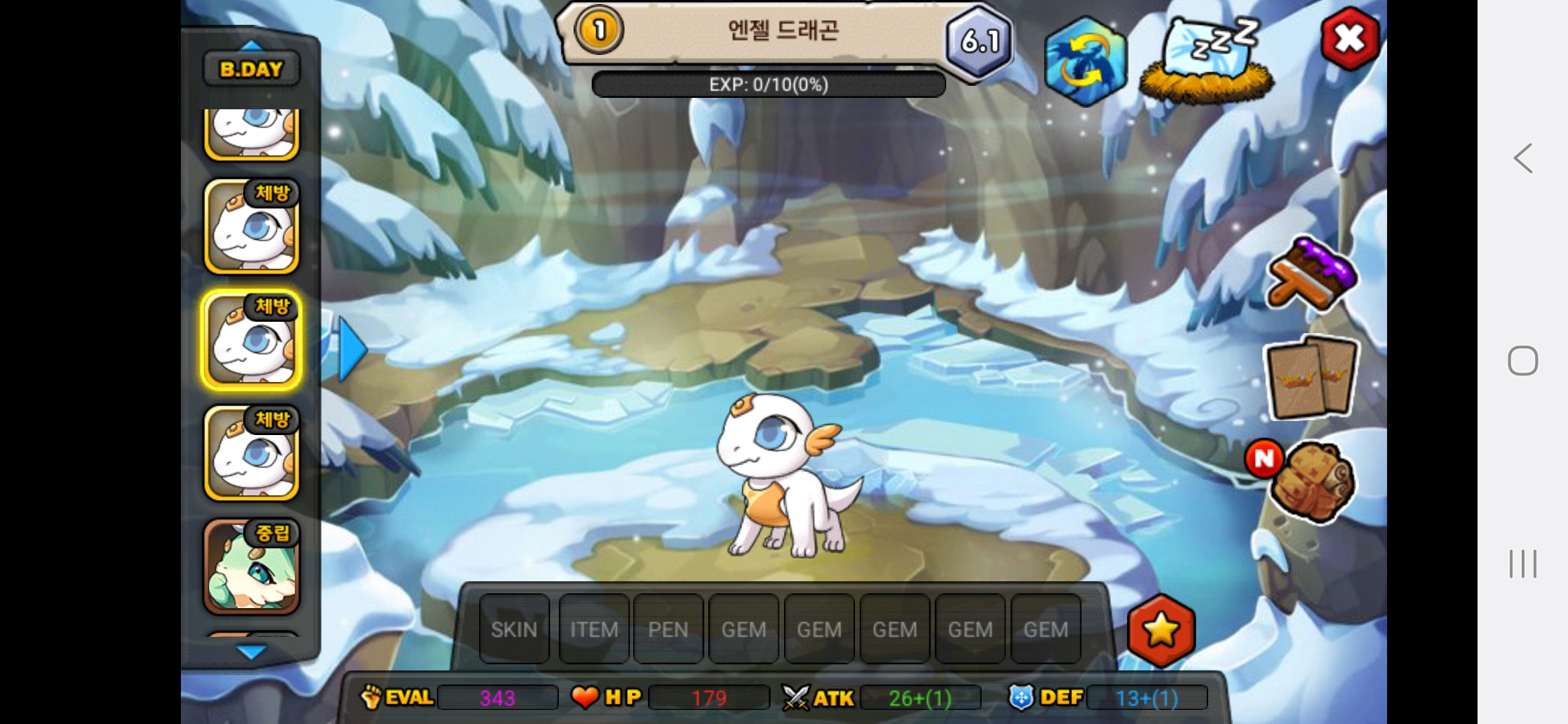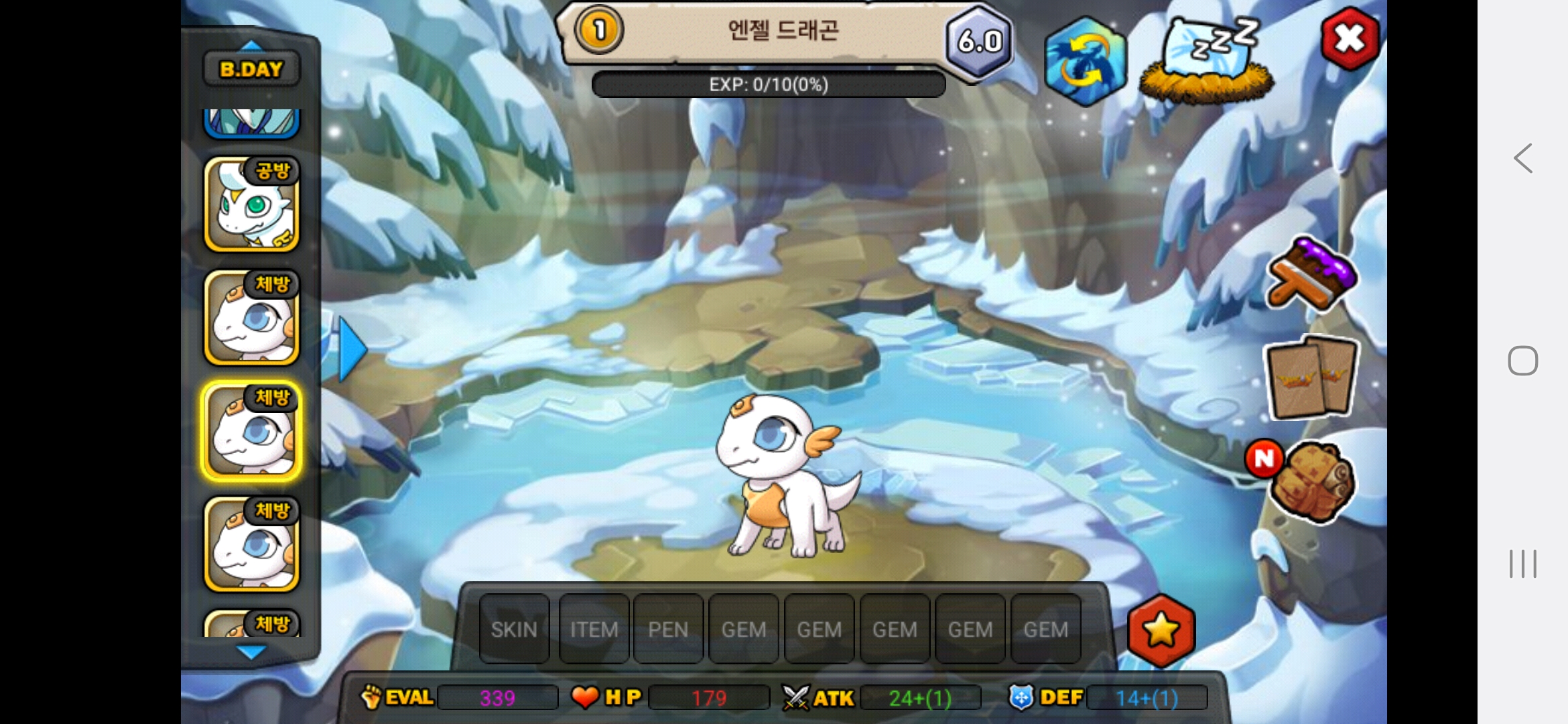 올해아직생일이 2월생이라 생일안지나서 25이죠 아직 하하저는 용들 다평등하게 예뻐합니다.다만 고대신룡을 전 계정에서 진각성시킨것을 전화번호바꿔서 계정날려서 그런것을 후회합니다.그래서 고대신룡에게 애정과 관심을 더주고싶은건사실입니다.흑룡을 키웠을때는 지금처럼 노력과 피와땀이 안보여서 키우는데 재미가없고 자본으로 승부하는맛밖에 안보이다보니 키우는게 재미가없더라고요 그래서 흑룡한테는 관심이 덜가고 걱정이덜되는게사실입니다. 고대신룡은 제첫 각성드래곤이기도 하고 그래서 예쁩니다.하지만,그래도 저는 흑룡,고대신룡,포메쿨,청룡,엔젤드래곤,엔젤드래곤,엔젤드래곤,엔젤드래곤,청룡,메라크,즈믄,콜로서스,다크닉스,