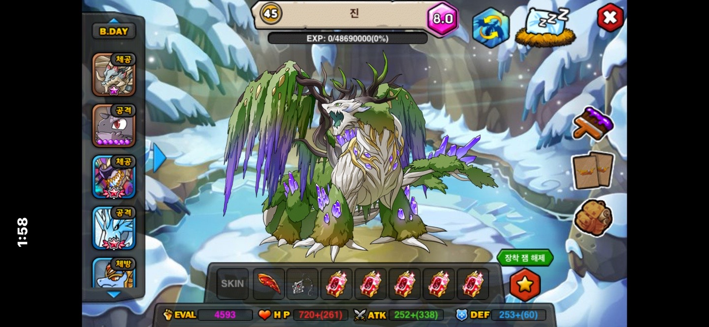 직접 카드팩에서 뽑아서 키우게 된 인베르소.. 외형도 멋지고, 복귀 후 처음으로 카드팩 구매해서 키워둔 용이라 저에겐 더욱 의미있는 용인 것 같아요.