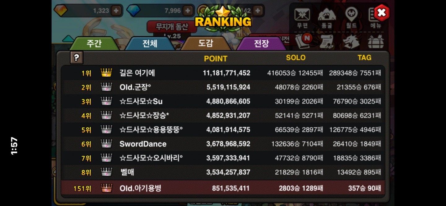 제 주변분들께선 좋은 스펙, 다양한 용, 길드전 등등 제가 목표하기엔 너무나 험난하고 어려운 길을 가시는 것을 보고, 내 용들과 스펙이 약하면 어떠하리.. 전체 랭킹 100위 안으로라도 찍어보자 하고 마음을 먹고 이렇게 하루하루 즐겨가며 플레이하고 있습니다.
