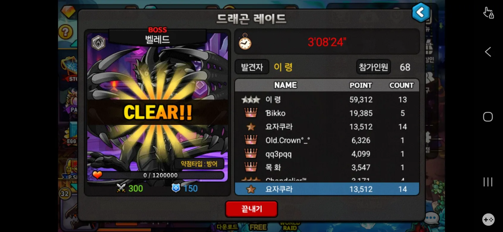 그리고 이것은 처음으로 레이드를 깨게 되었던 시점이다. 다른 사람들을 보며 "난 왜 이렇게 딜이 약하지...." 라고 생각을 하며 보상을 깟지만 절대 벨레드는 나오지 않았다..... 이후로도 벨레드를 도전을 계속하였지만 나는 아직도 벨레드가 없다.....