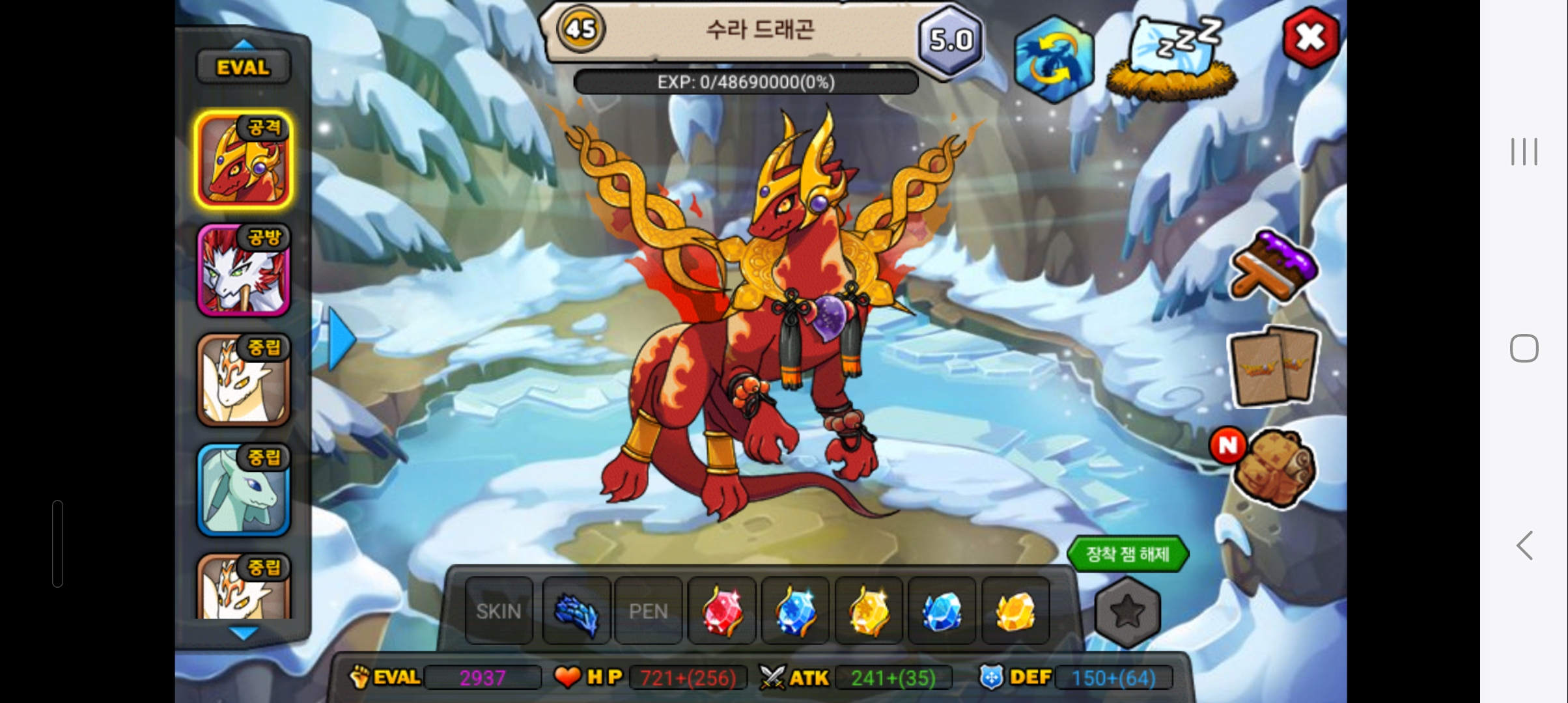 육성은 수라-디멘- 데락or 다른 공격형 - 캡슐 및 각성