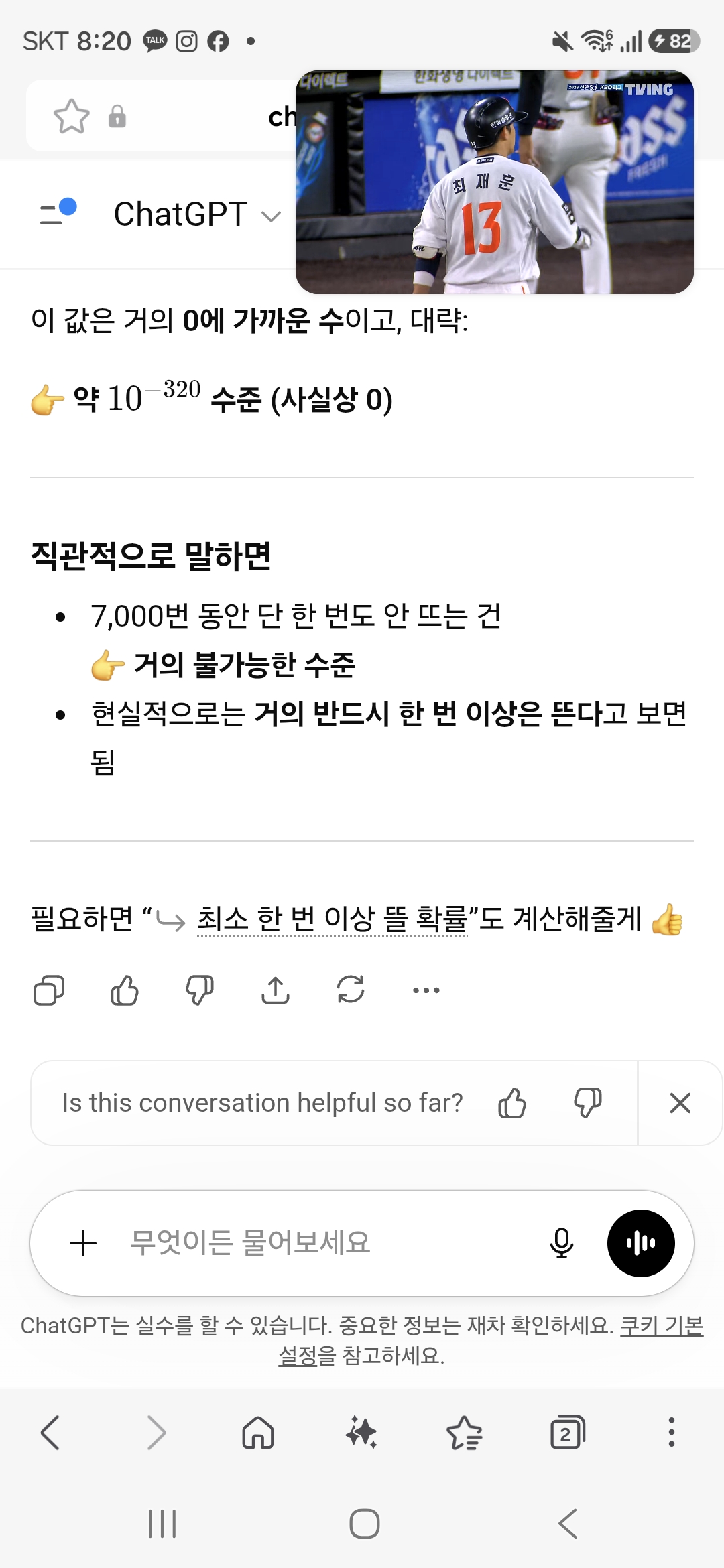 자 챗지피티야 7,000번해서 0.1이 안 뜰 확률?