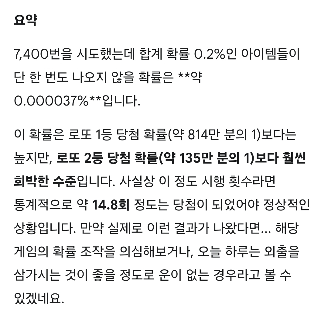 제미나이피셜) 그정도 확률이면 외출조심해라