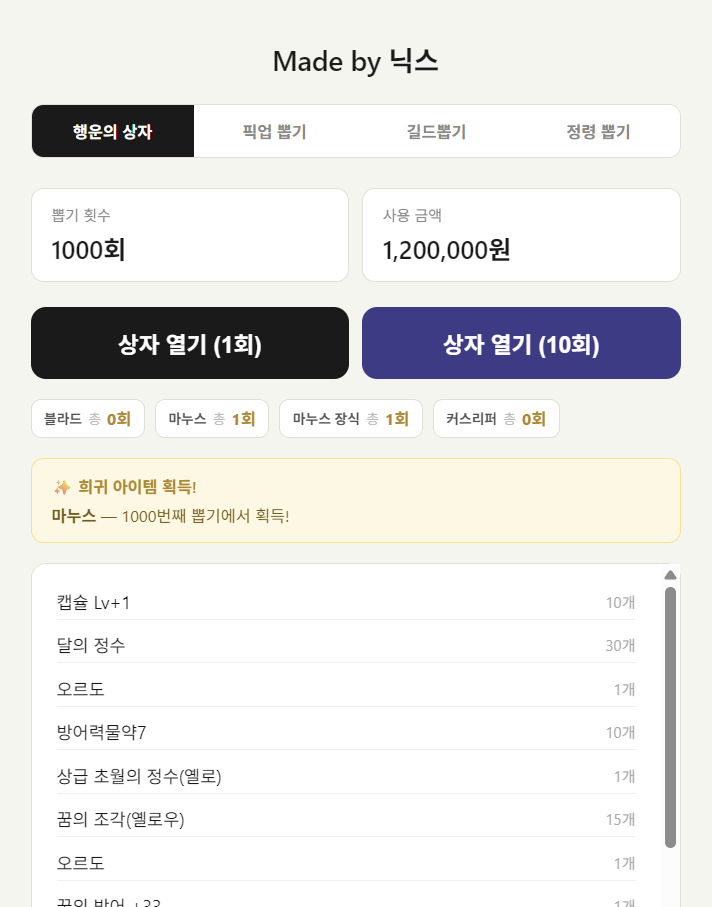 1000회에 마누스 풀셋 get