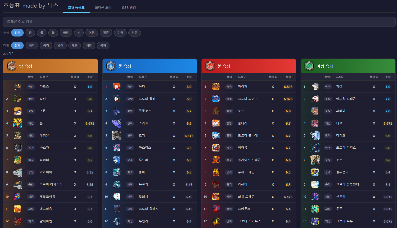 속성 및 타입, 드래곤 최대 단계 이미지까지 연동할 예정입니다.