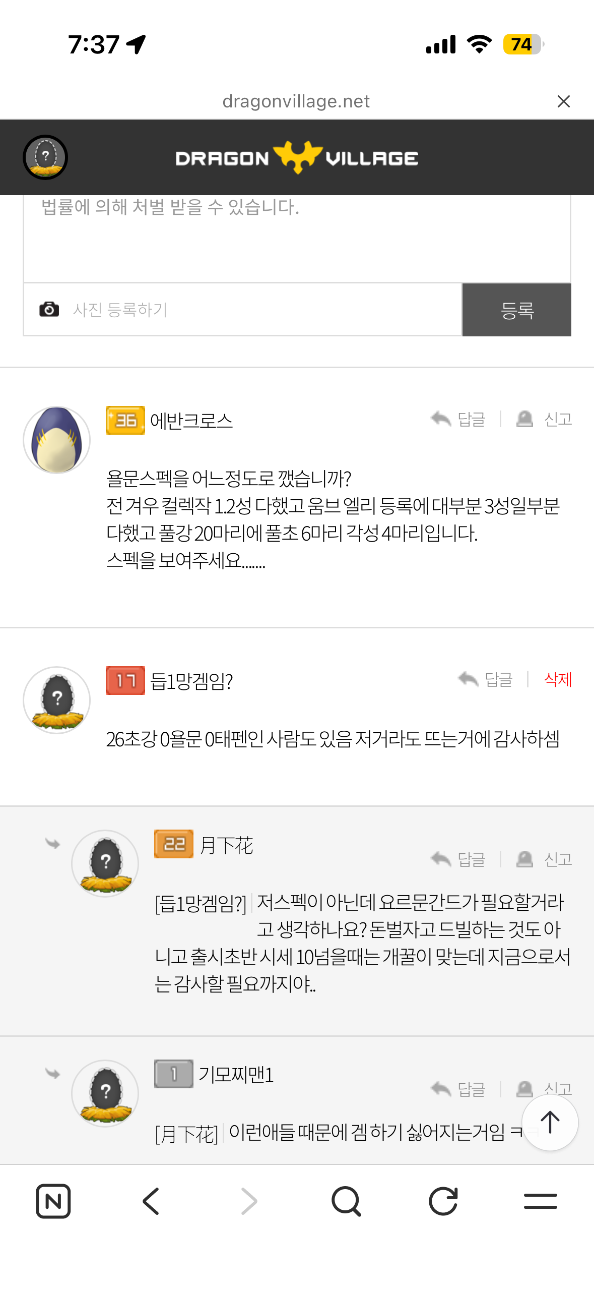 욜문 3개뜨고도 감사한줄을 모르네