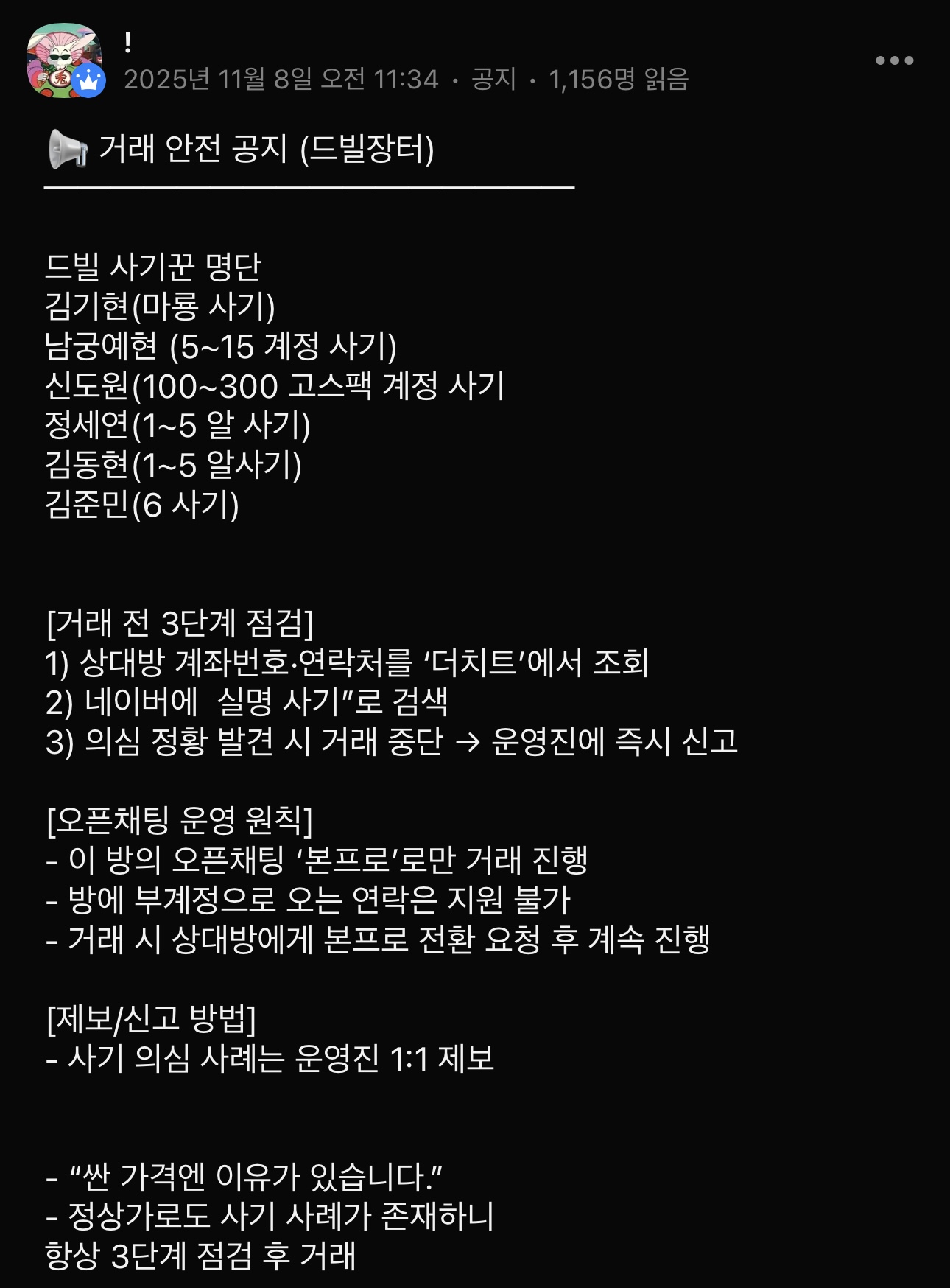 임시밴 조치 할거고 사기 방지하며 운영 될 예정임