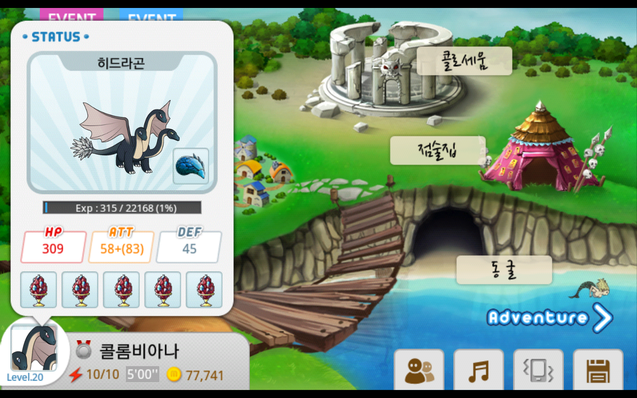 제가 아끼는 히드라곤 3번 렙20에 체력도쌔고 신전에서 10연승^^