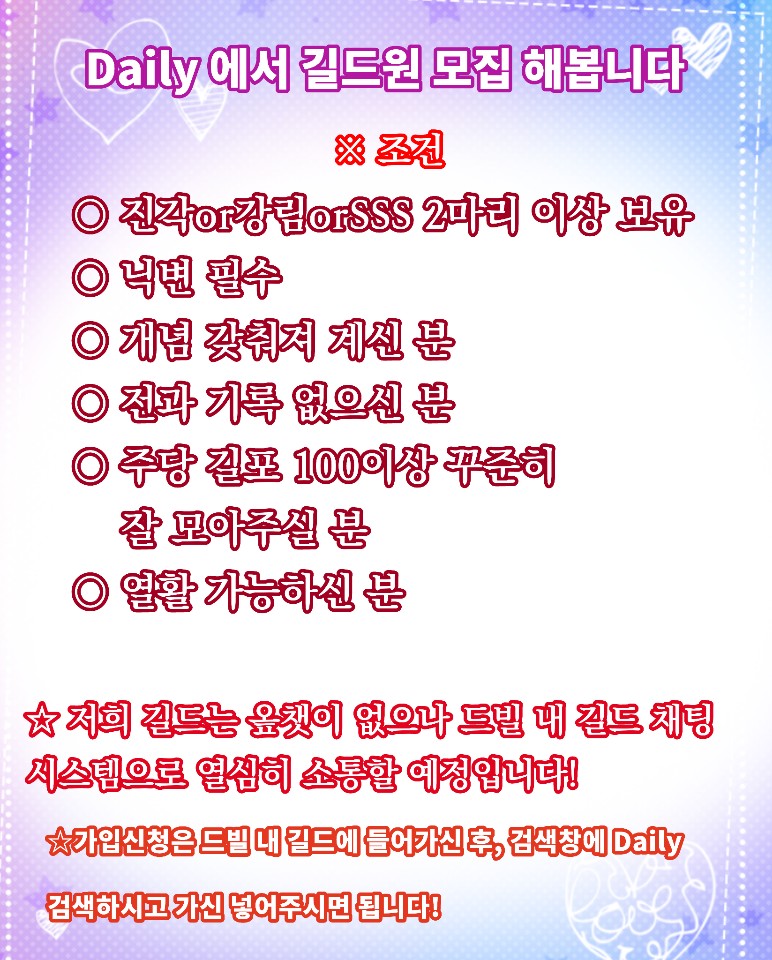 Daily 길드에서 길원 모집합니다!!