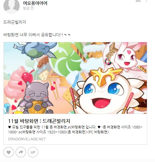 공유하기를 통해서 친구들과 드래곤빌리지 안에서 행복하세요!