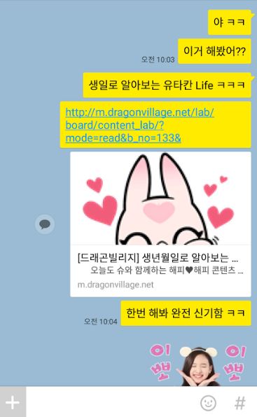 카카오톡을 하면서 친구 카카오스토리에서 드래곤빌리지 홈페이지 게시물을 공유할 수 있는 기능!!