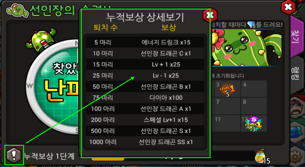 *선인장을 퇴치할 때마다 다이아 보상이?!