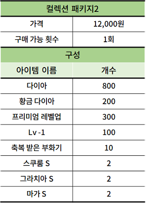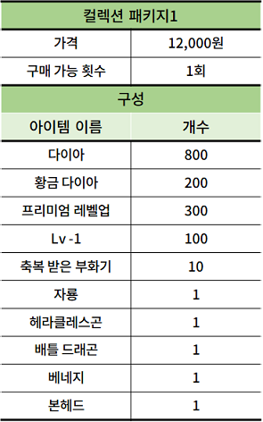컬렉션 등록에 필요한 드래곤들 육성에 도움이 되는 상품들로 구성한 컬렉션 패키지 1, 2가 판매됩니다.