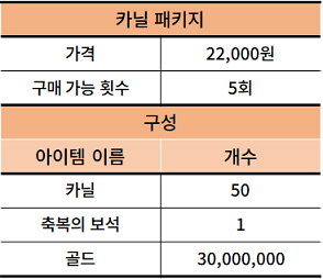 카닐과 축복의 보석, 골드를 획득할 수 있는 카닐 패키지가 판매됩니다.