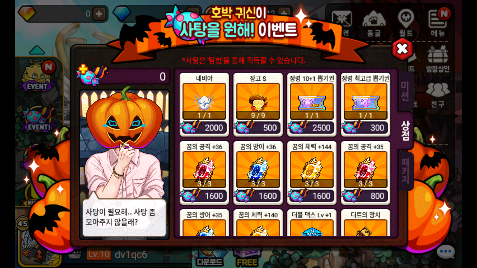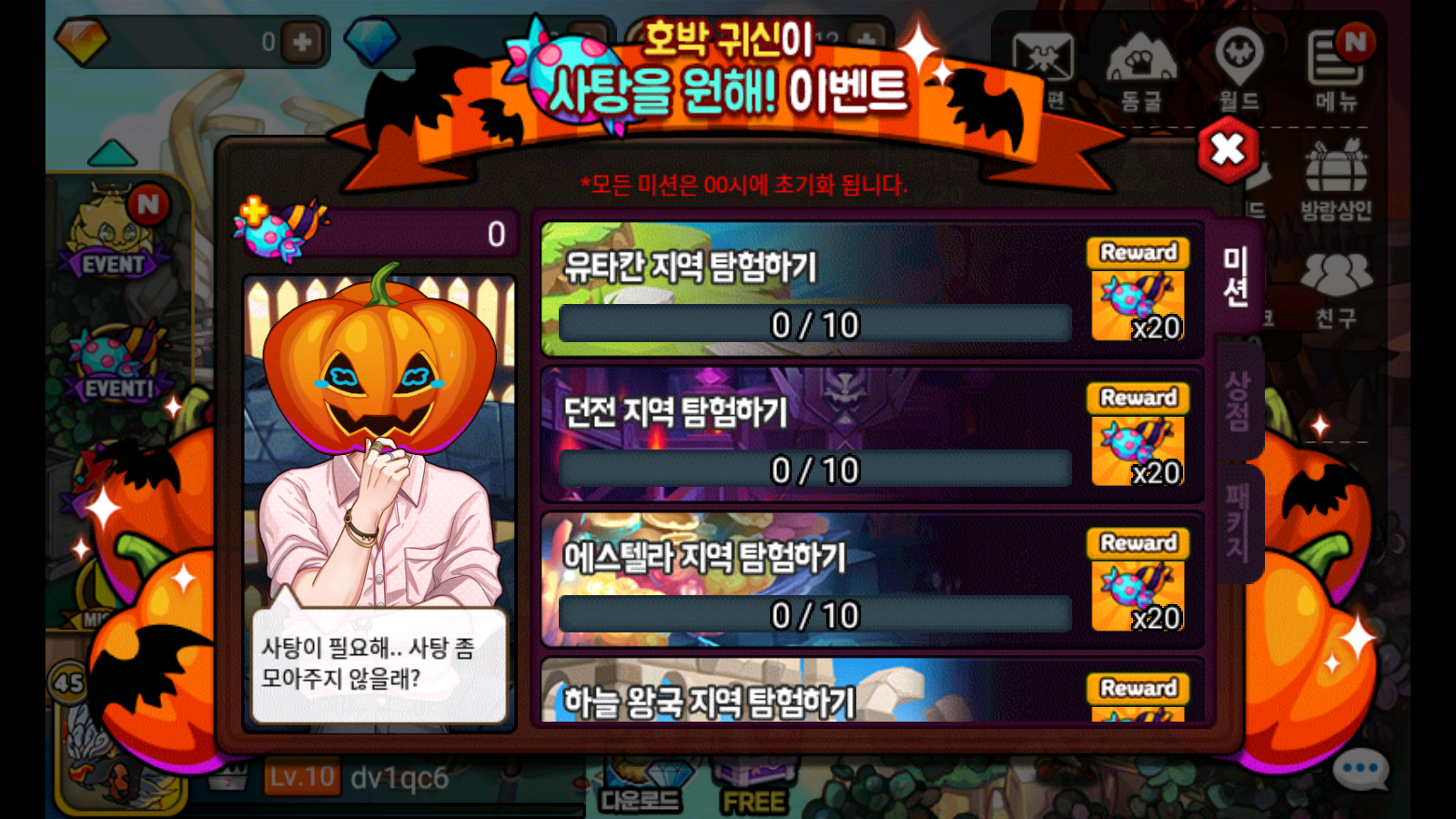 * 이벤트 기간 중 미션 및 탐험을 통해 획득 가능한 사탕의 일일 최대 수량은 200개입니다.
