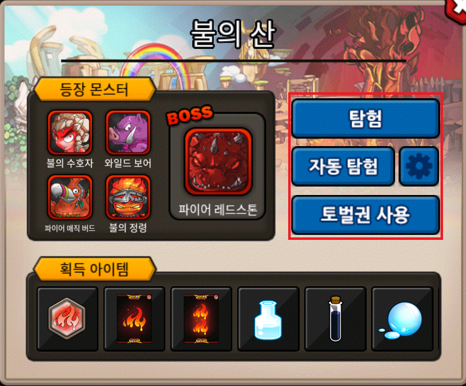 (탐험, 자동 탐험, 토벌권을 사용해 획득할 수 있습니다.)