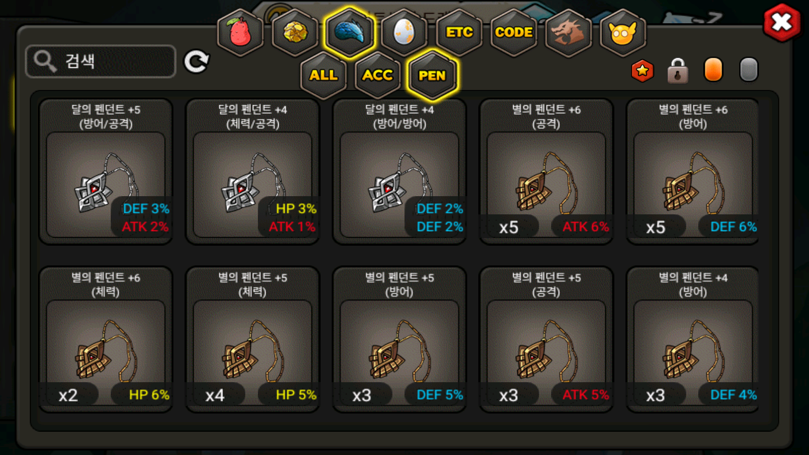 - 펜던트의 경우, 별에 펜던트에 한하여 동일한 인챈트 옵션 및 %이면 개수와 함께 대표로 1개만 노출되도록 개선하였습니다.